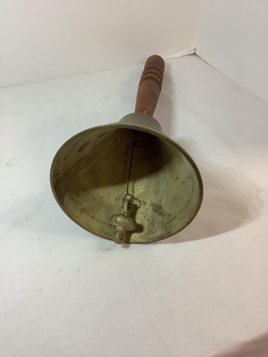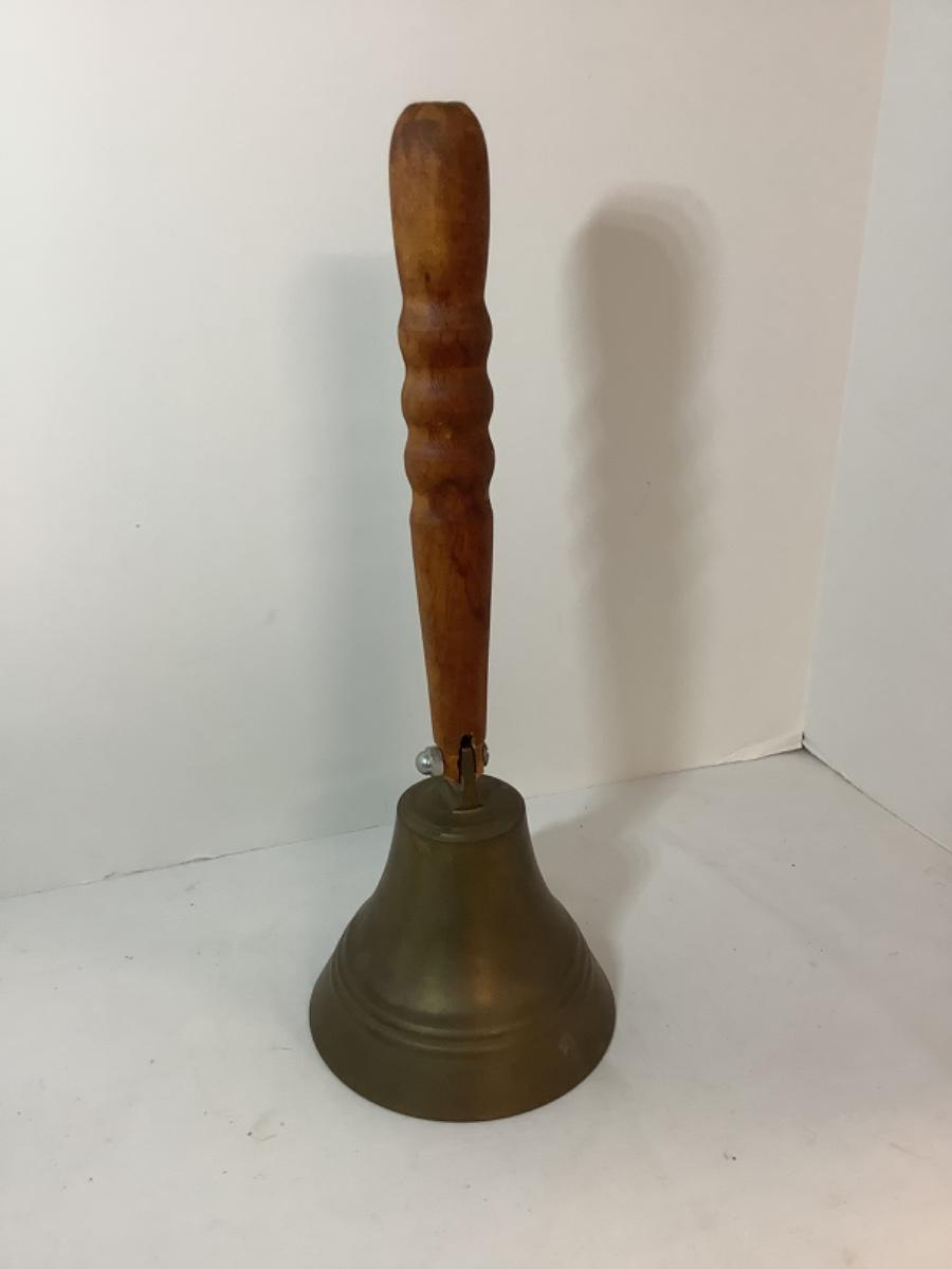 Vintage School Teacher Brass Bell with Wooden Handle. -