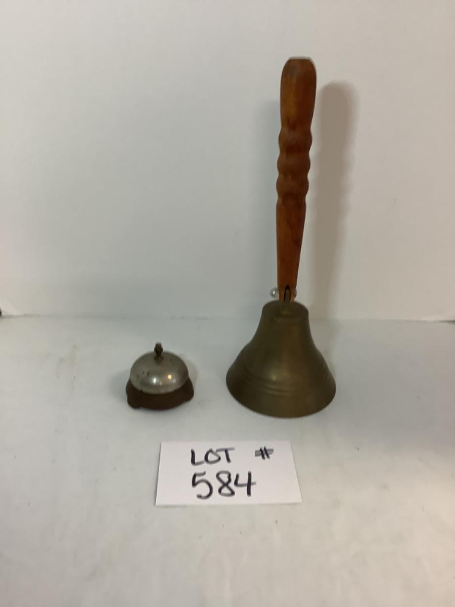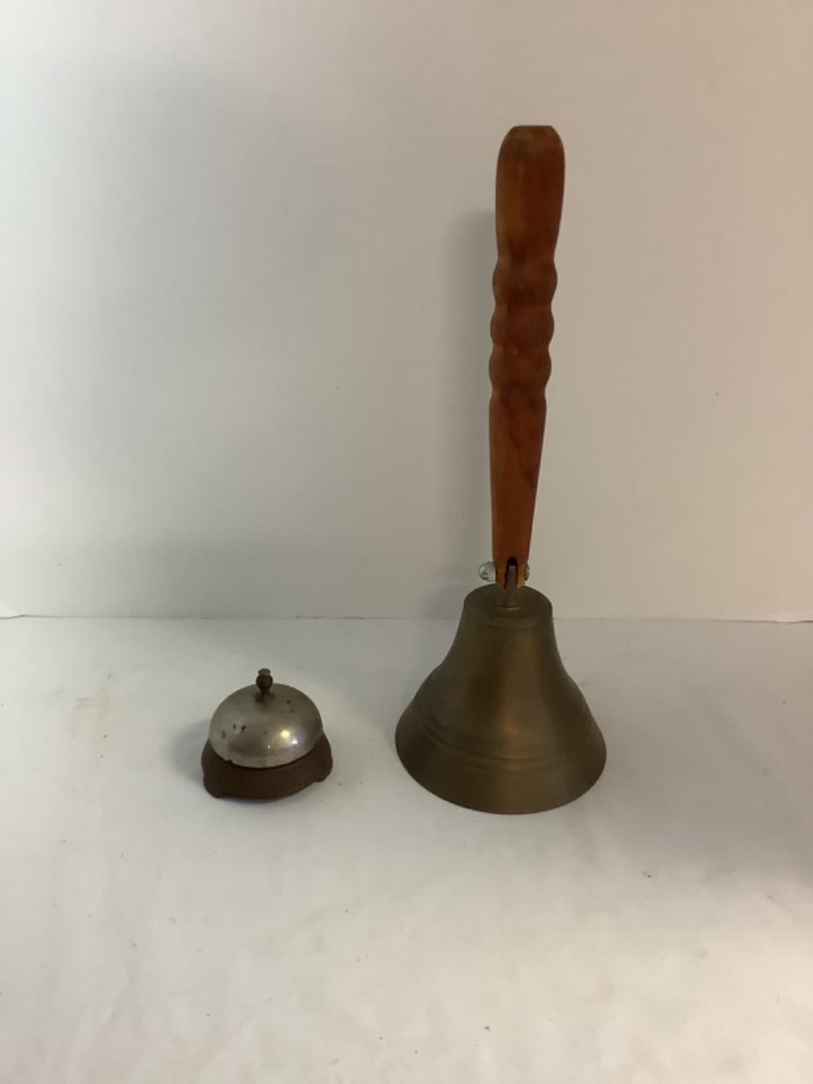 E - 584 Vintage School Teacher Brass Bell with Wooden Handle. & Vintage Store Counter /Hotel Desk Call Bell
