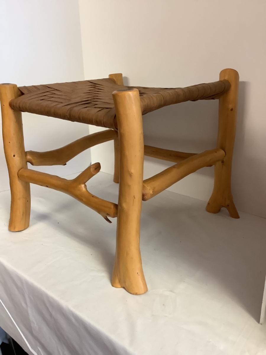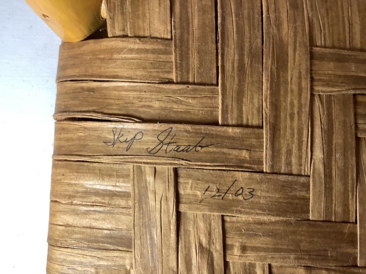 Signed/Hand Crafted Wooden Stool with Split Oak Seat by Skip Staab of Pinetree Pottery FL