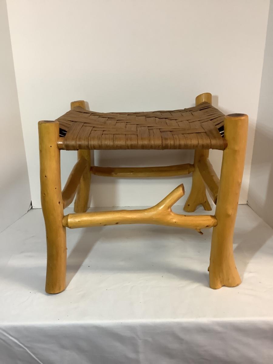 E - 585 Signed/Hand Crafted Wooden Stool with Split Oak Seat by Skip Staab of Pinetree Pottery FL