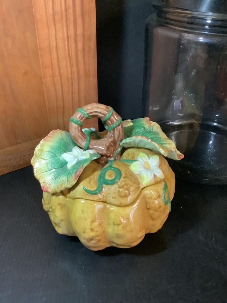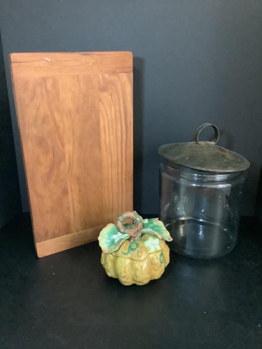 E - 600  Fitz & Floyd Decorative Dish with Lid & Antique Glass Canister
