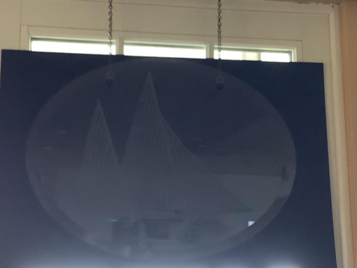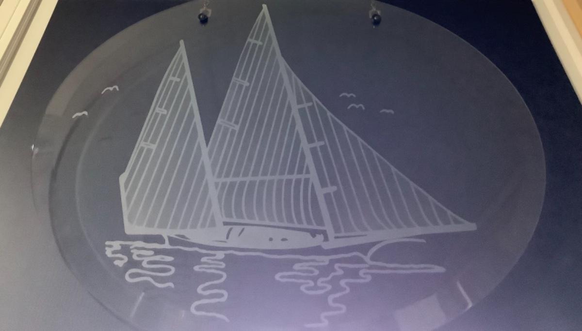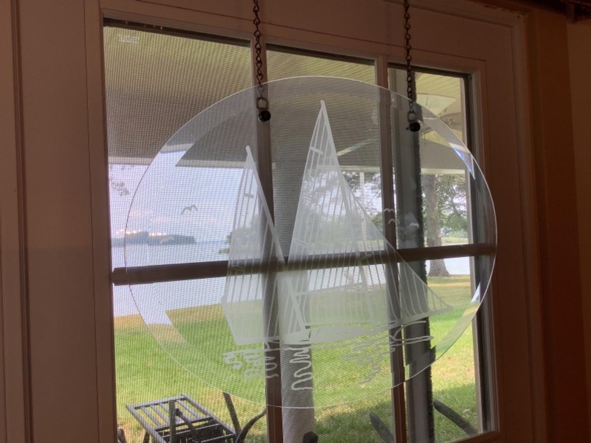 E 601 Hanging Oval Beveled Glass Sailboat Etching