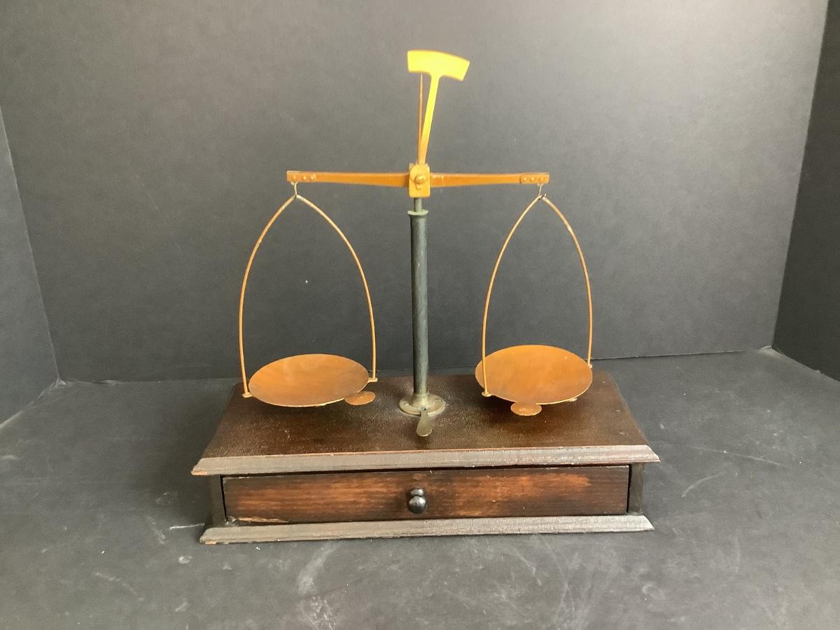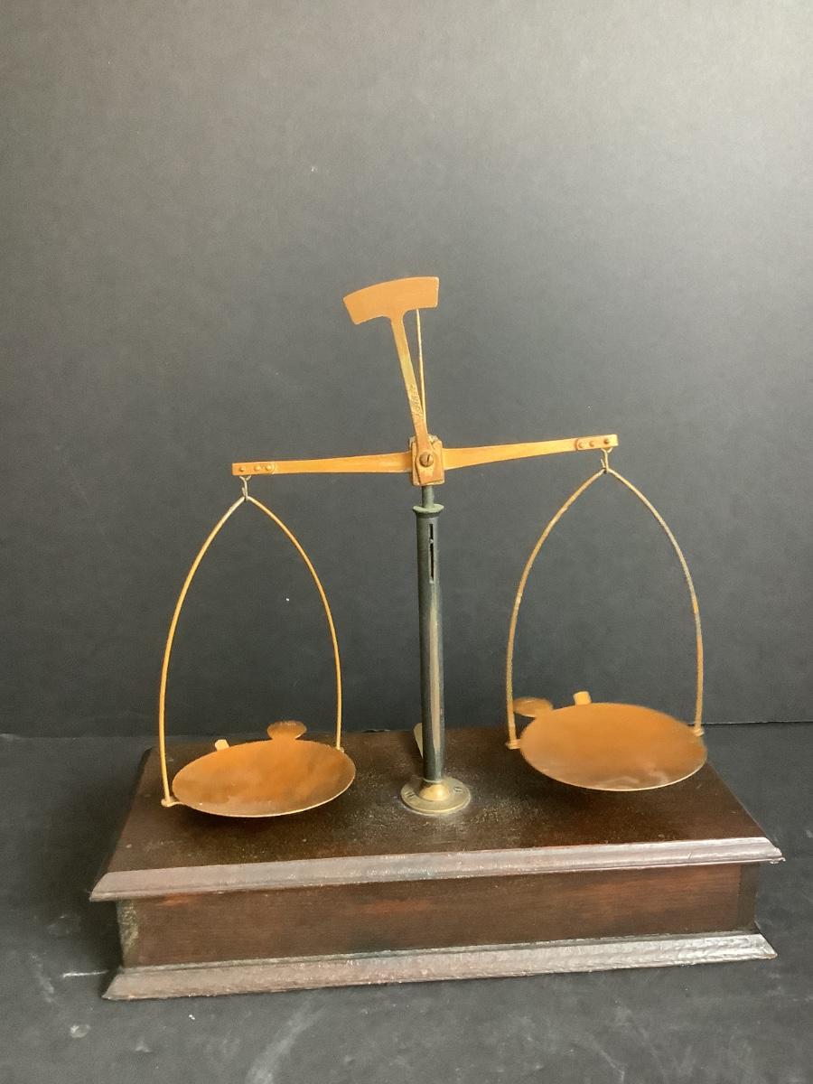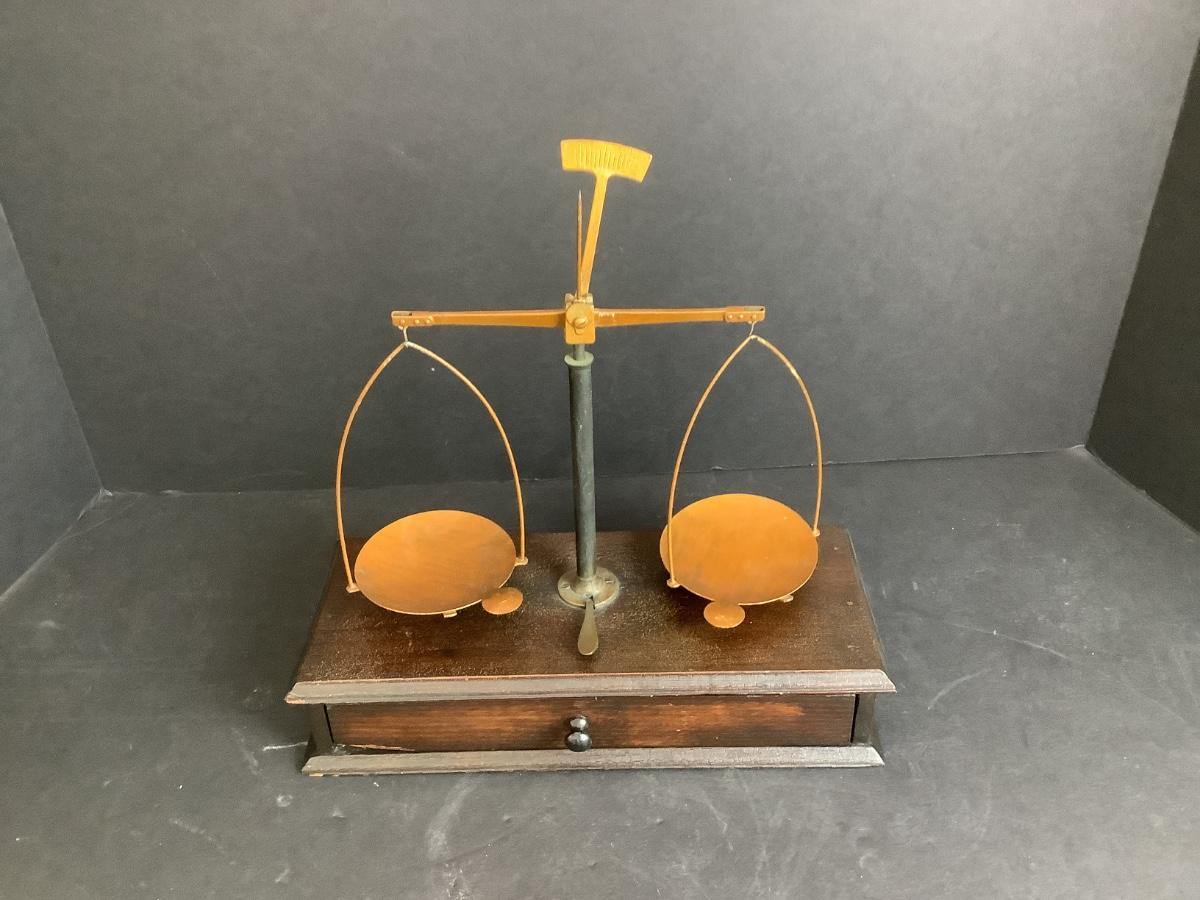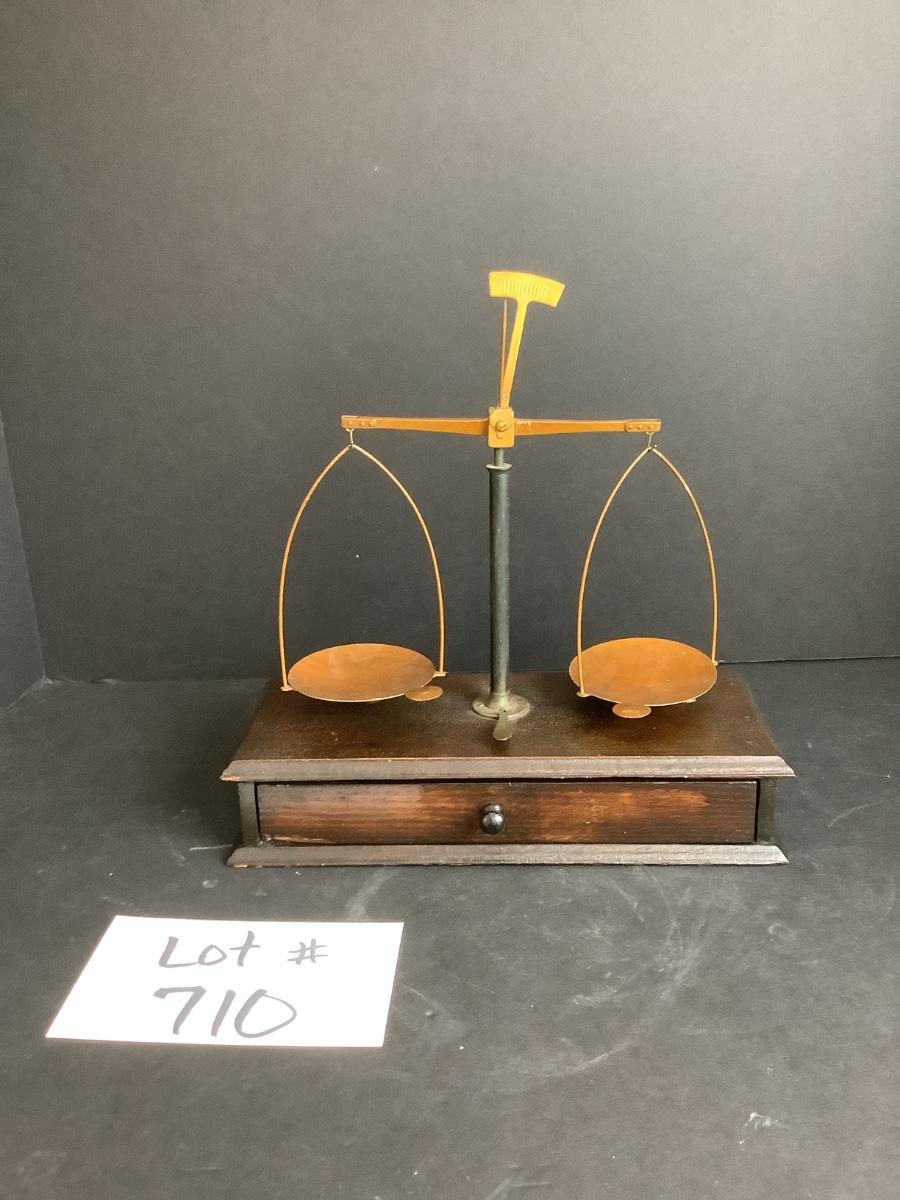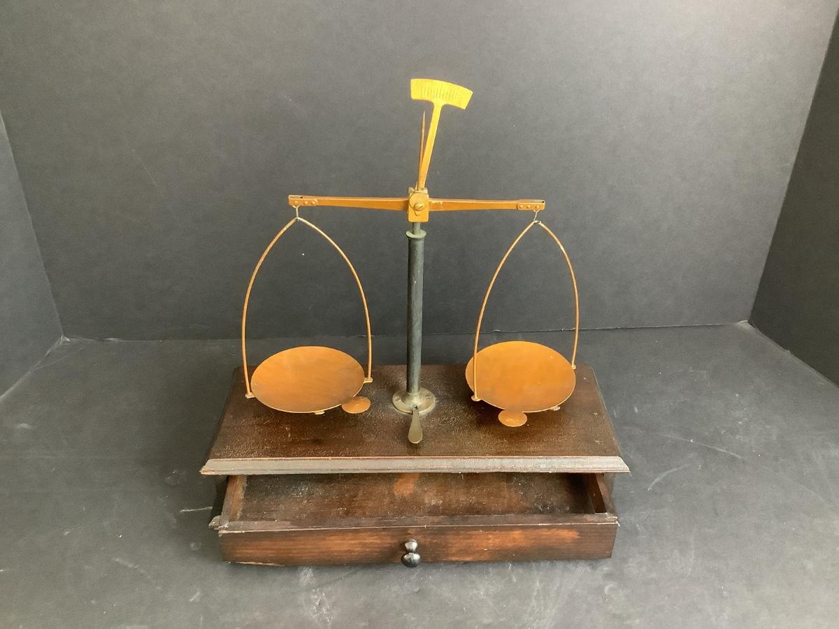 E - 710. Vintage Traveling Gold & Apothecary Balance Pan Scale