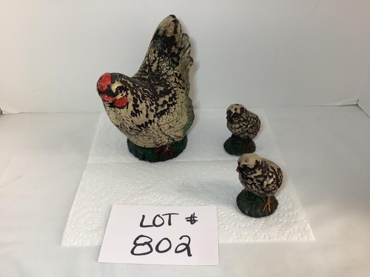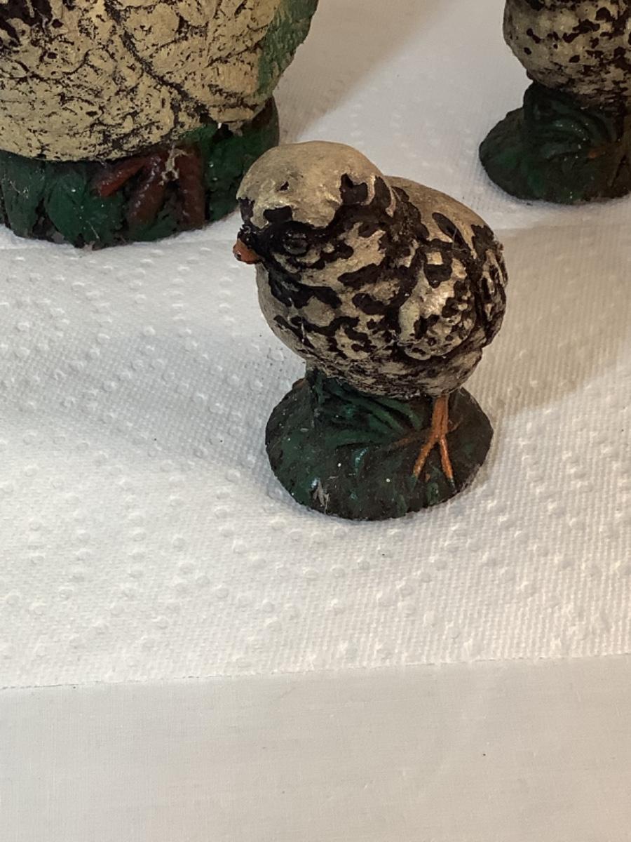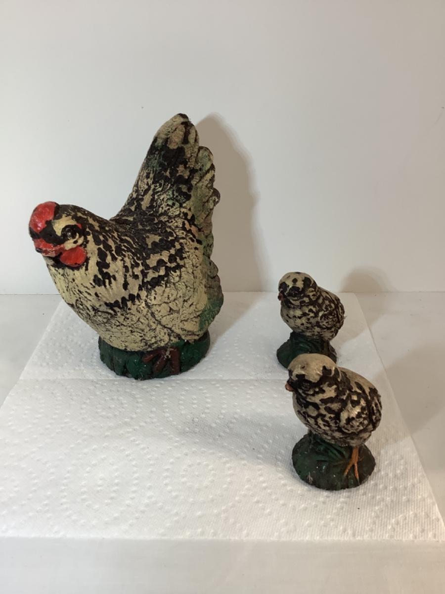 E - 802 Set of Three Vintage Hand Carved / Hand Painted Lava Rock, Hen & Chicks