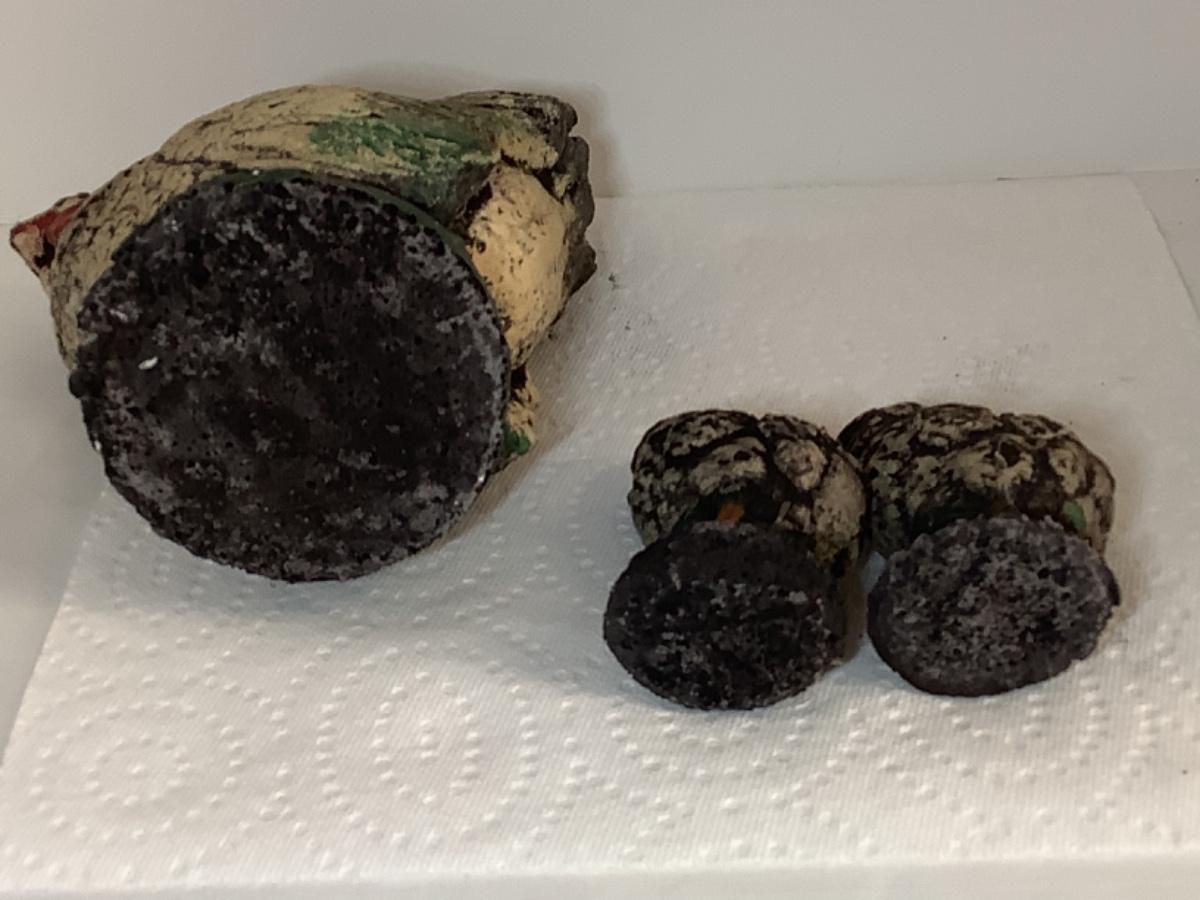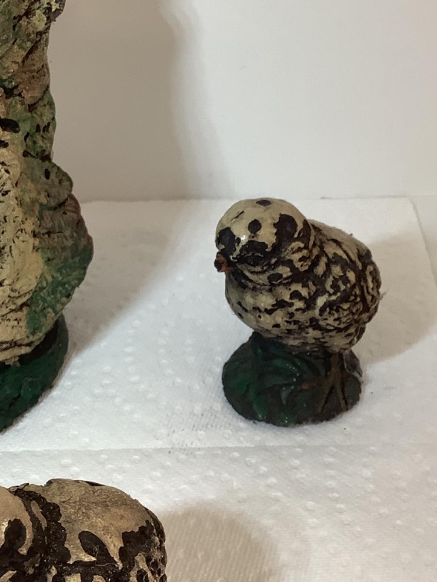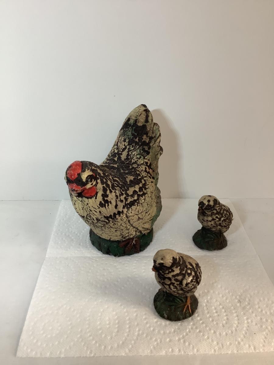 E - 802 Set of Three Vintage Hand Carved / Hand Painted Lava Rock, Hen & Chicks