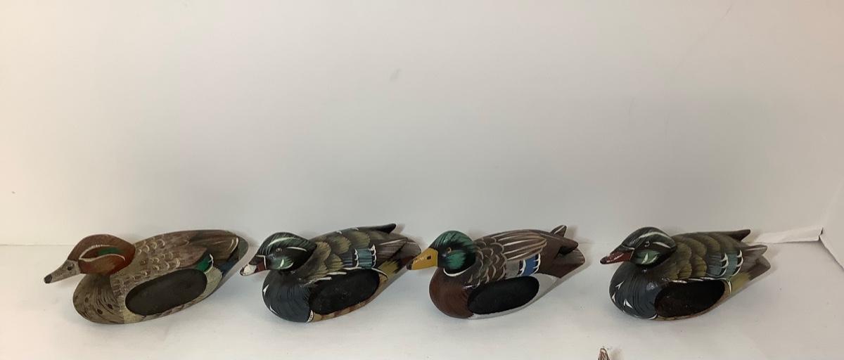 E - 805 Hand Carved Wooden Ducks & Wooden Duck Napkin Holders