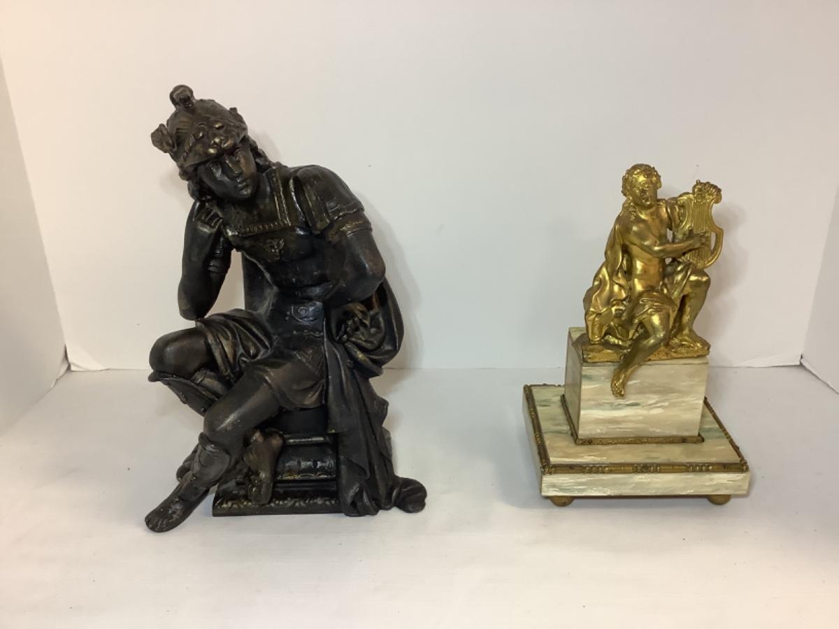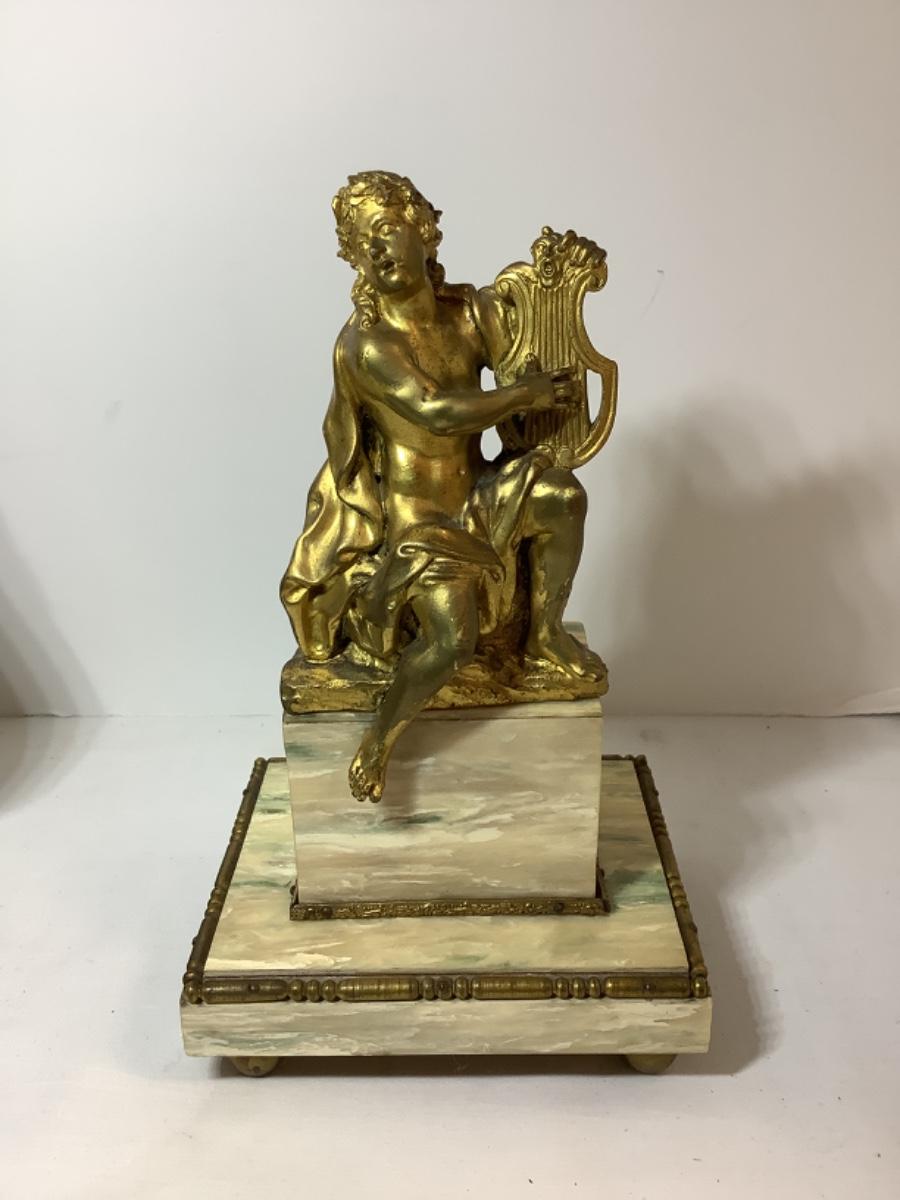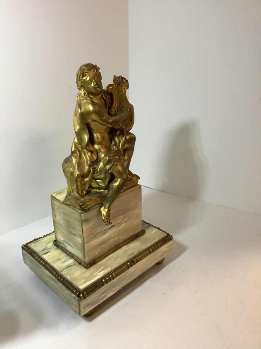E - 809 Antique French Sculpture & Vintage Brass Figure Playing the Harp