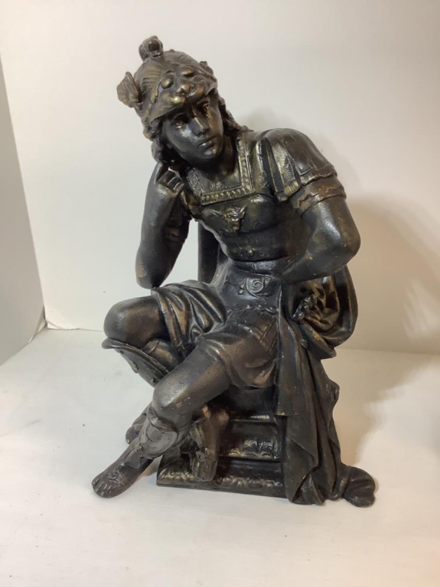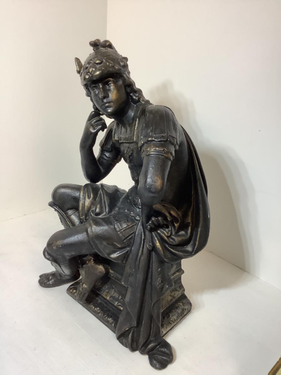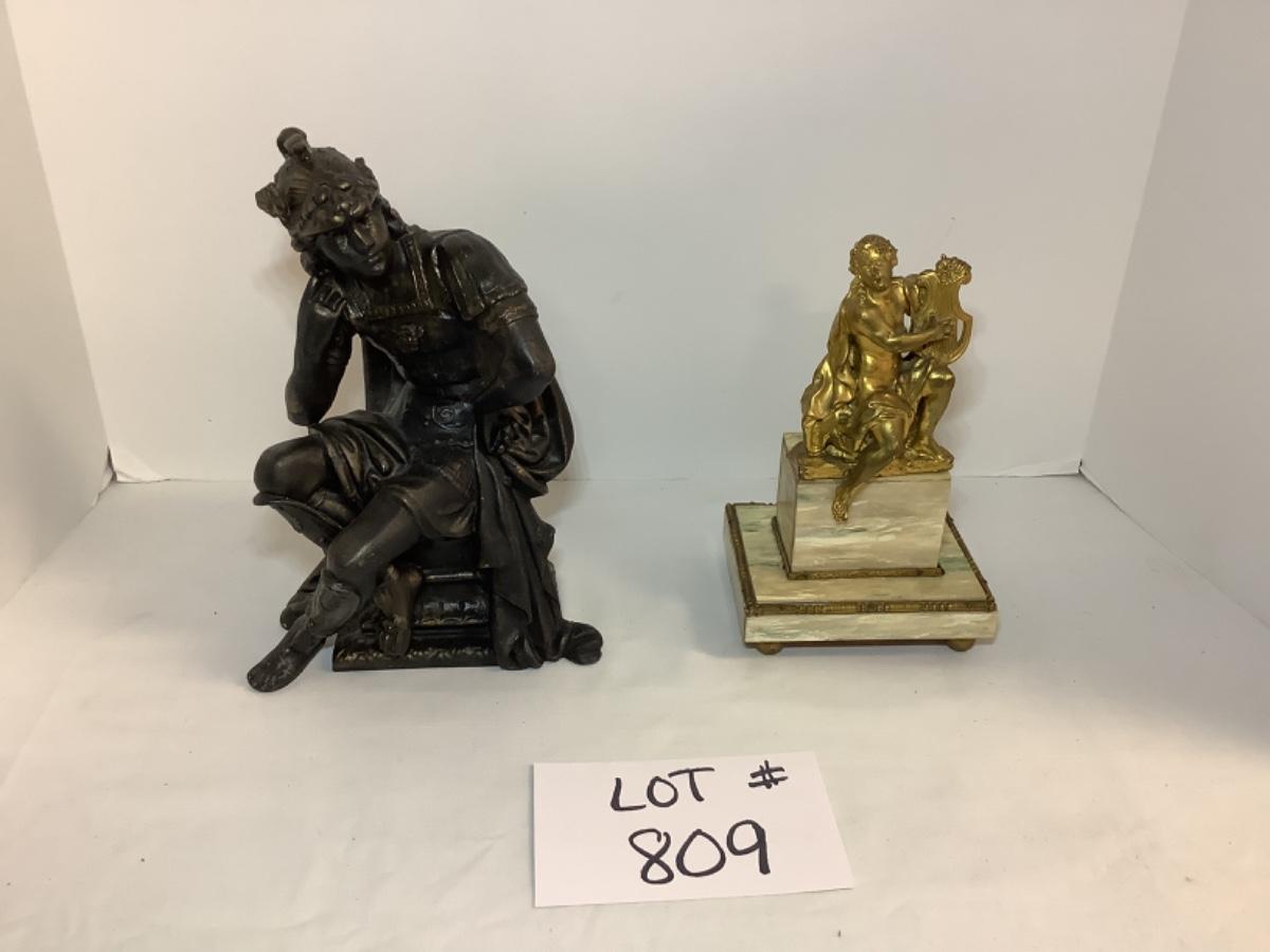 E - 809 Antique French Sculpture & Vintage Brass Figure Playing the Harp