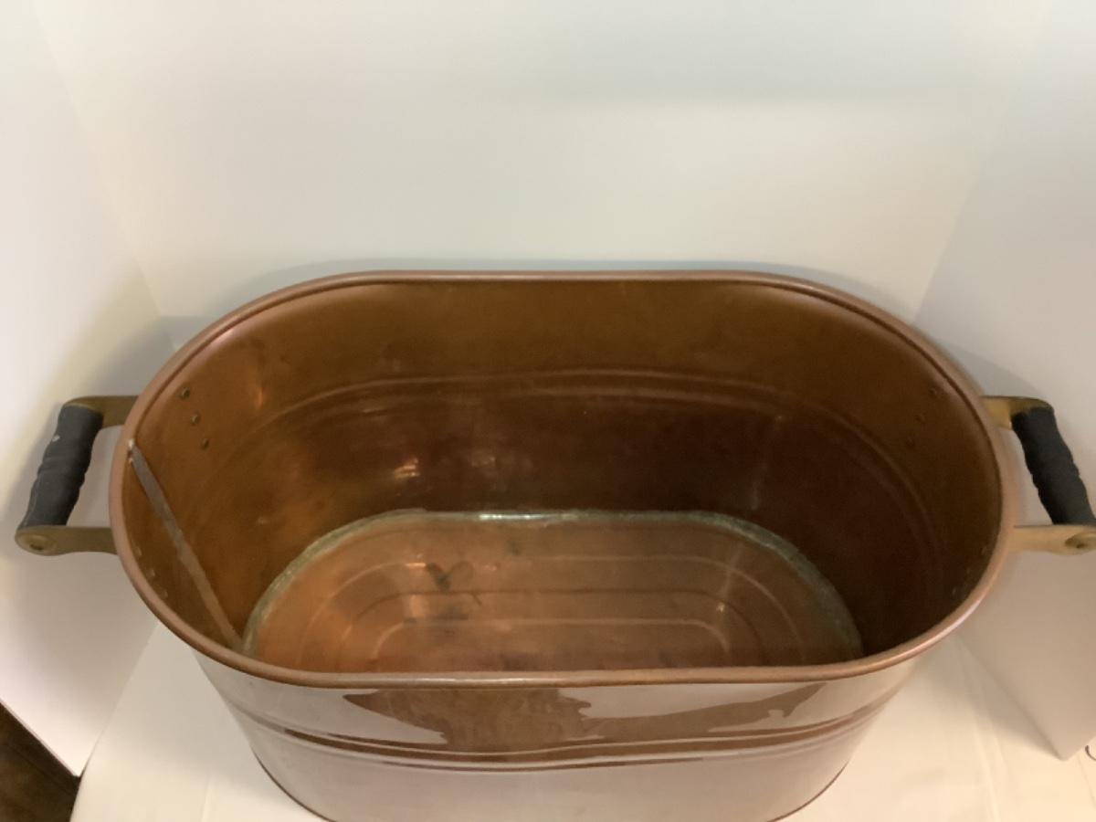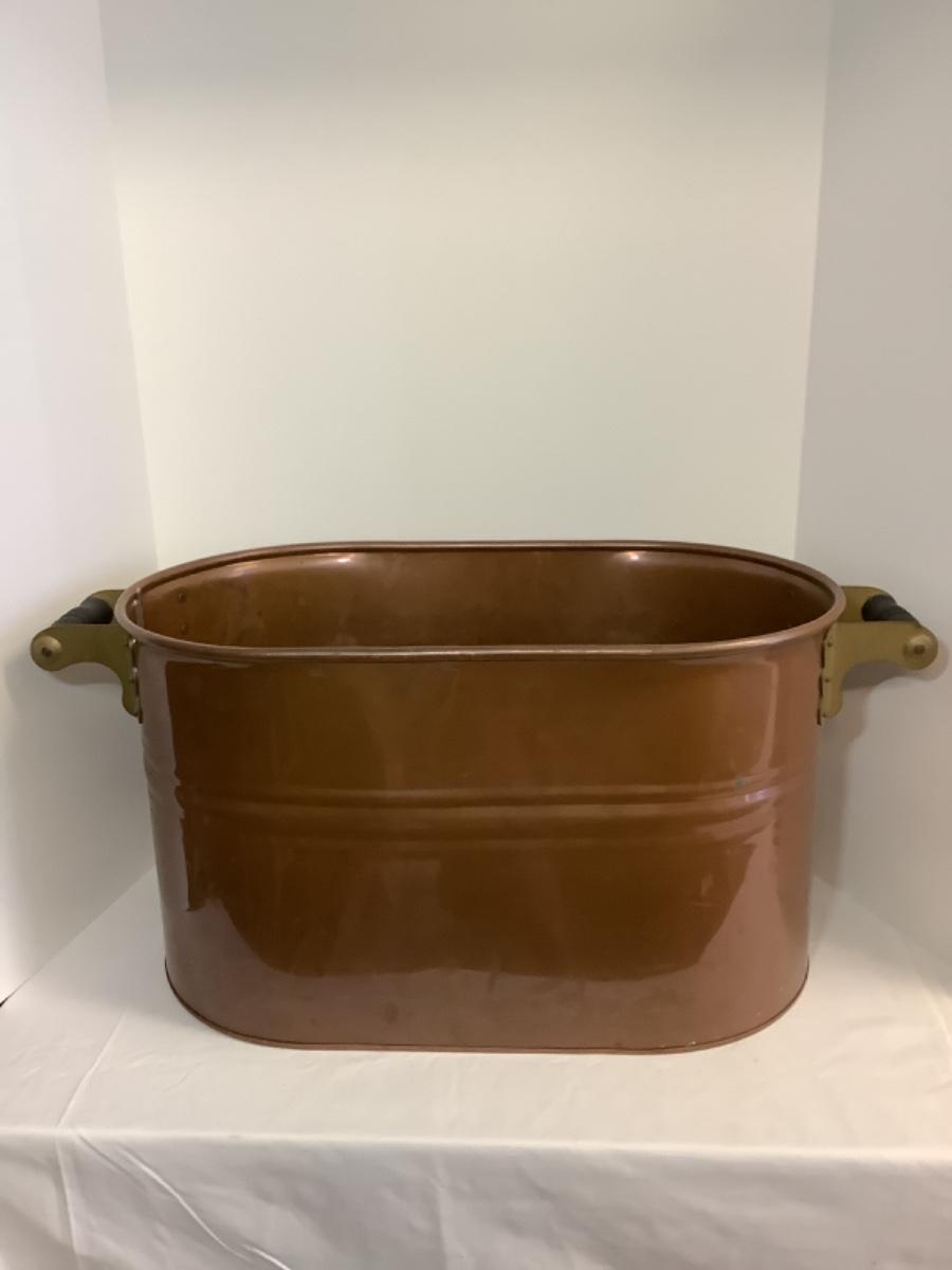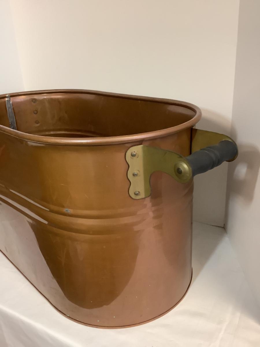 E - 819 Large Oval Copper Kettle with Brass Mounts and Wooden Handles