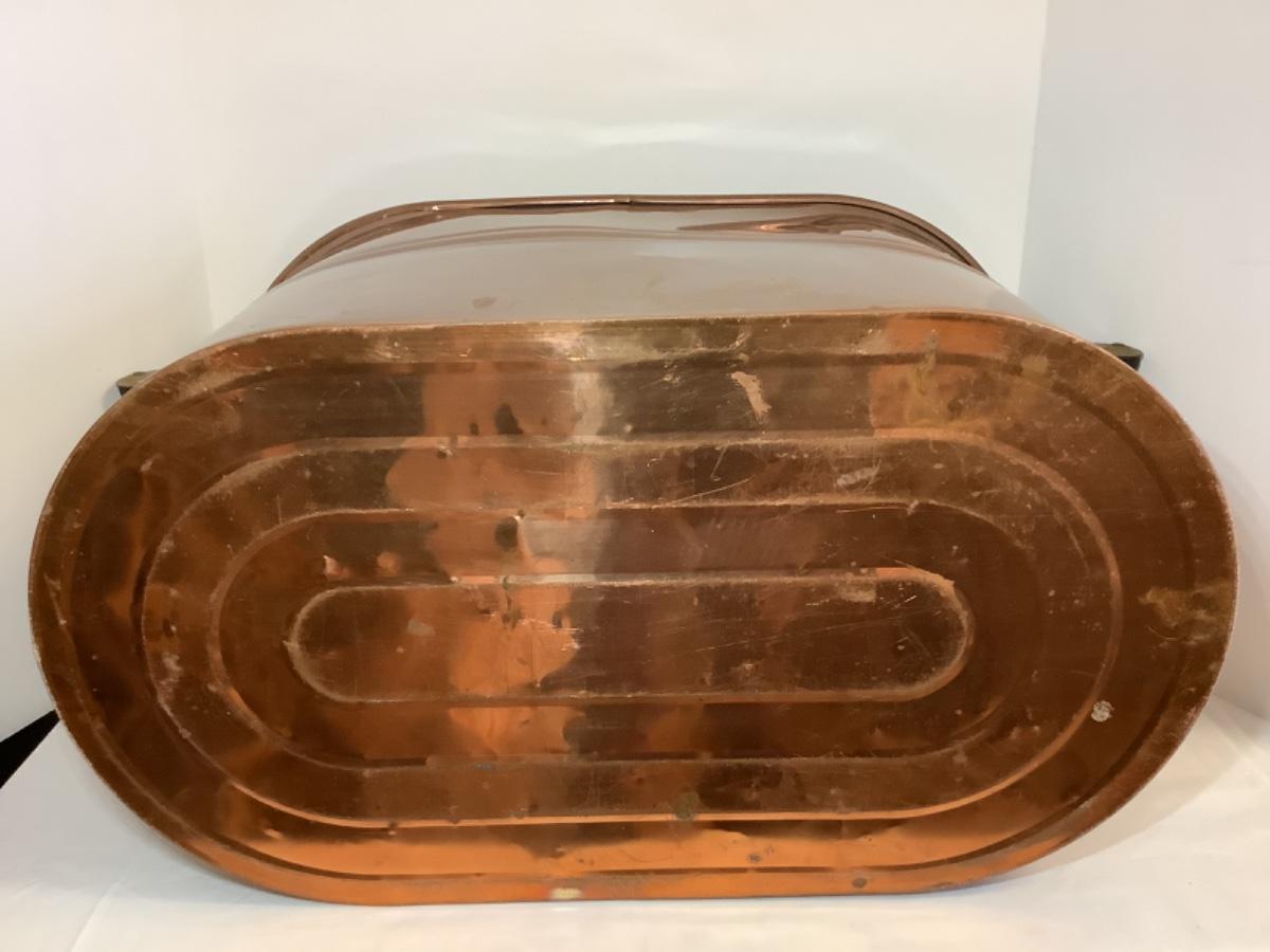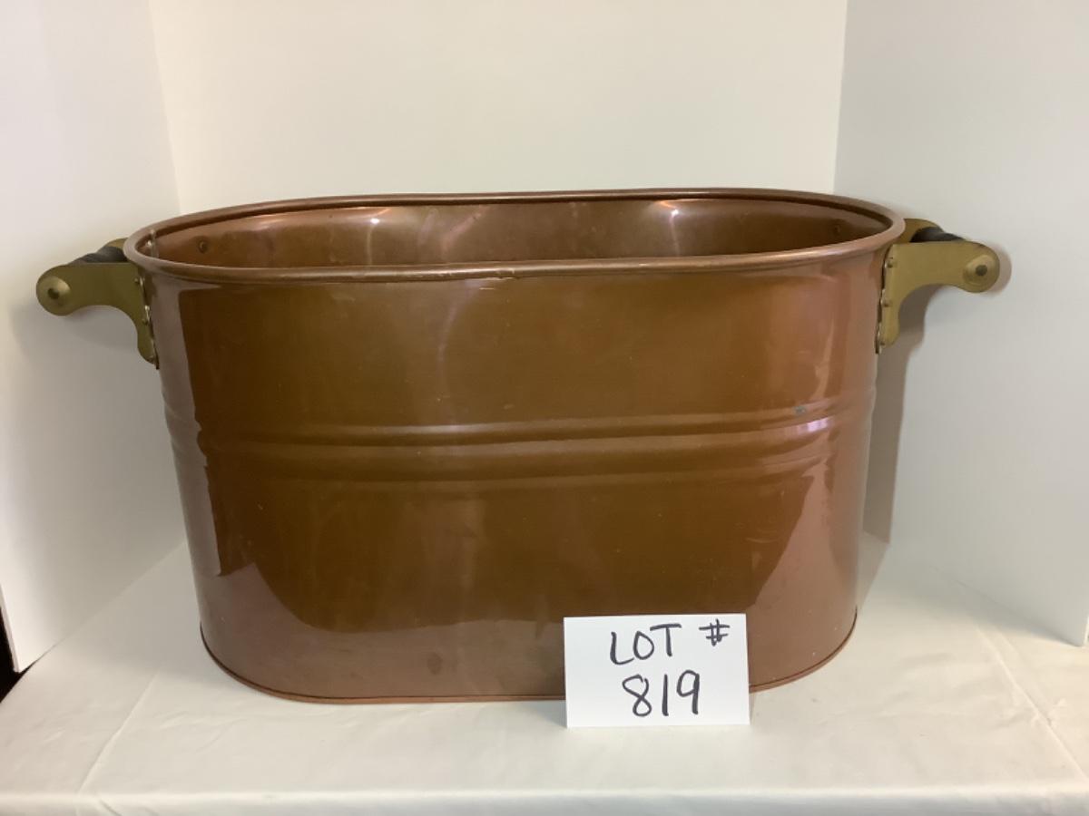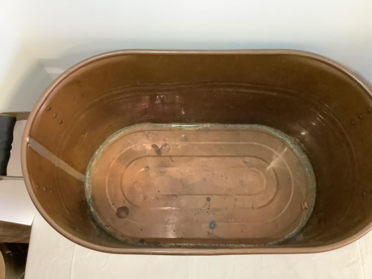 E - 819 Large Oval Copper Kettle with Brass Mounts and Wooden Handles
