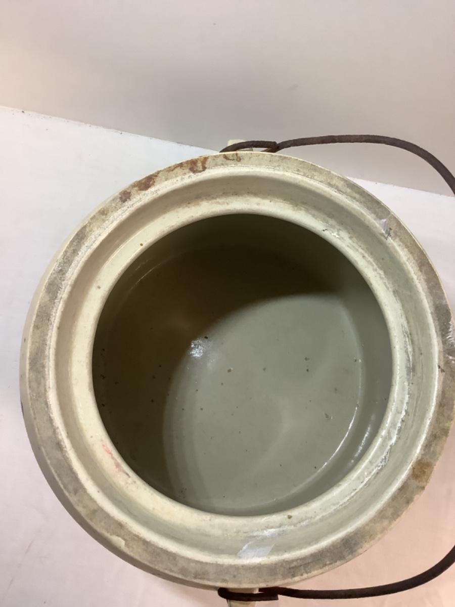 Antique Hand Painted Handled Stoneware Food Crock by Ann Lanier