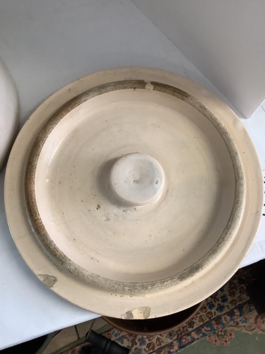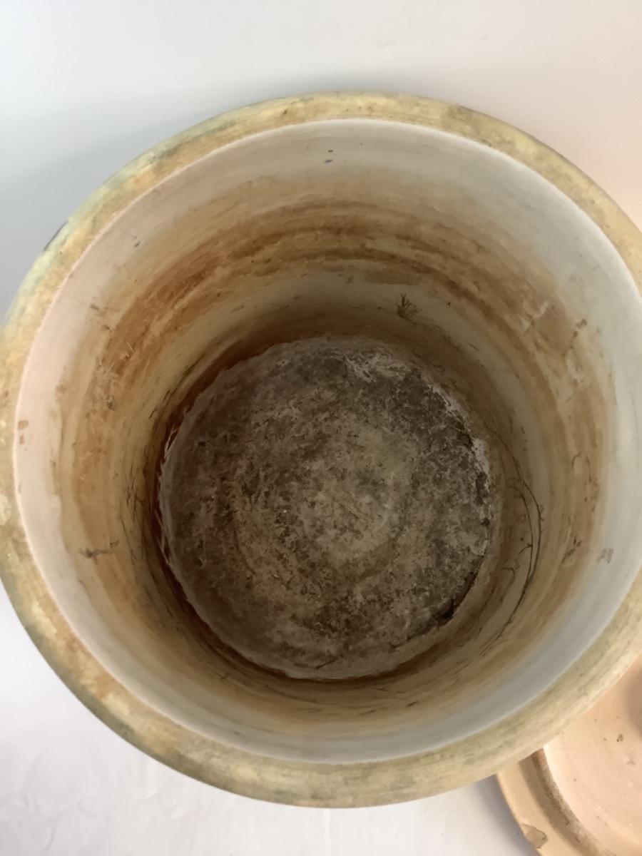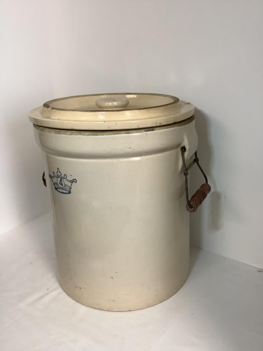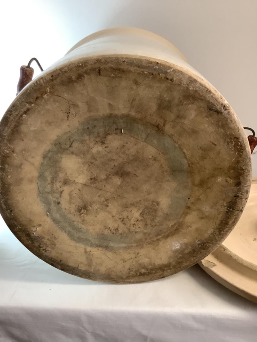 Large Ransbottom Brothers Four Gallon Stoneware Crock with Lid & Wooden Handles