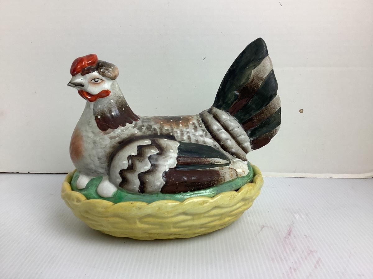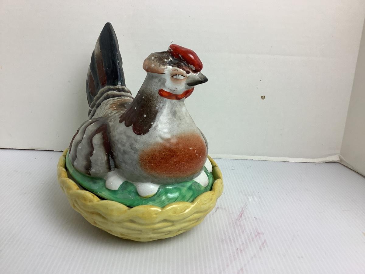 E - 835 Antique Staffordshire Pottery Hen on Nest