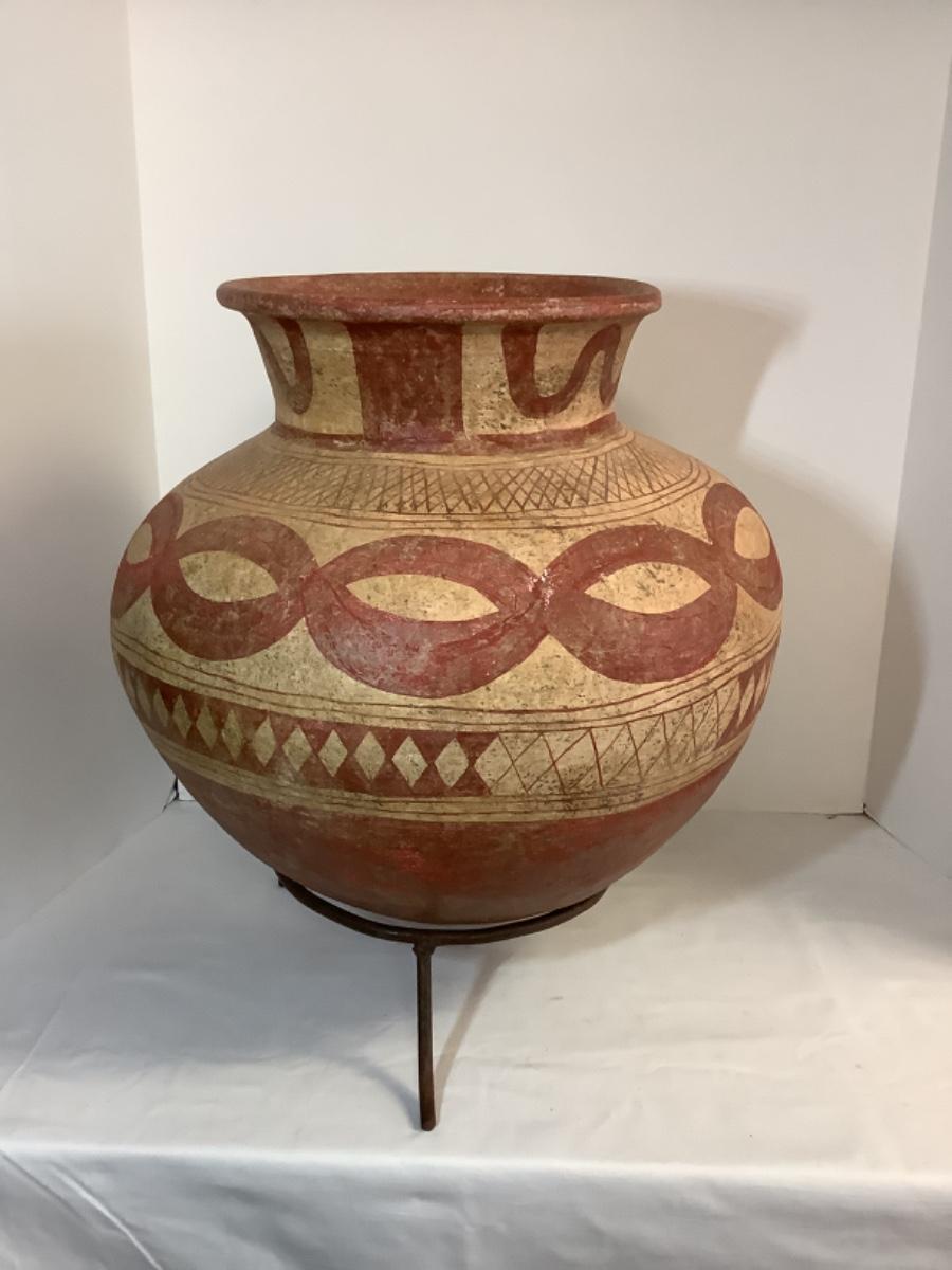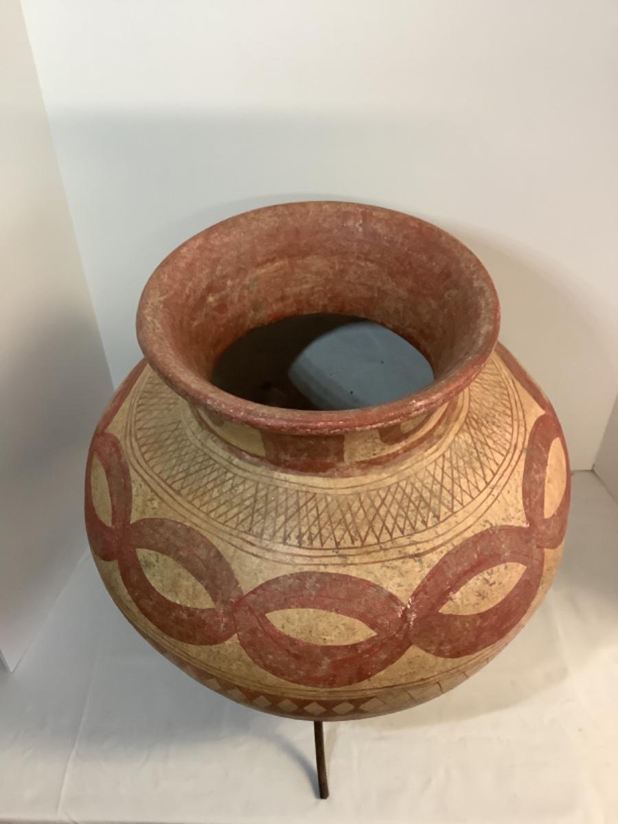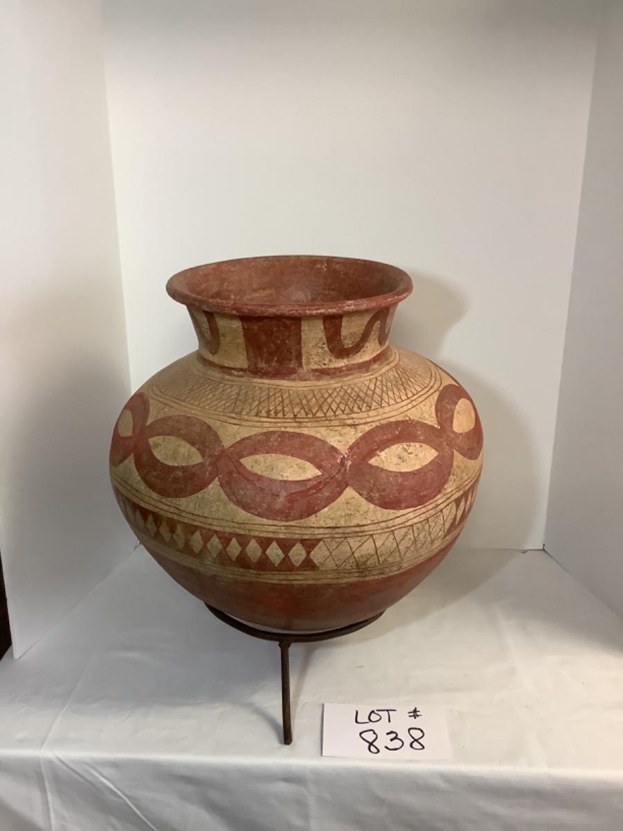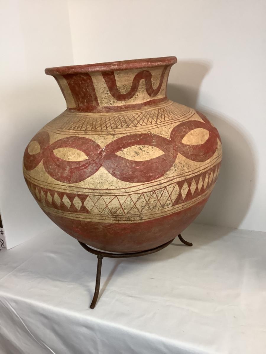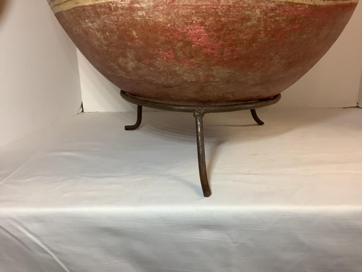 E - 838 Large Decorative Pottery Jug on Wrought Iron Base