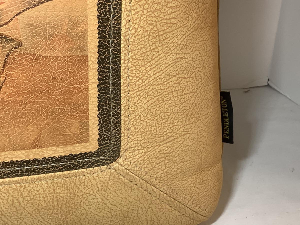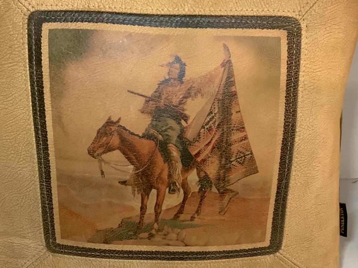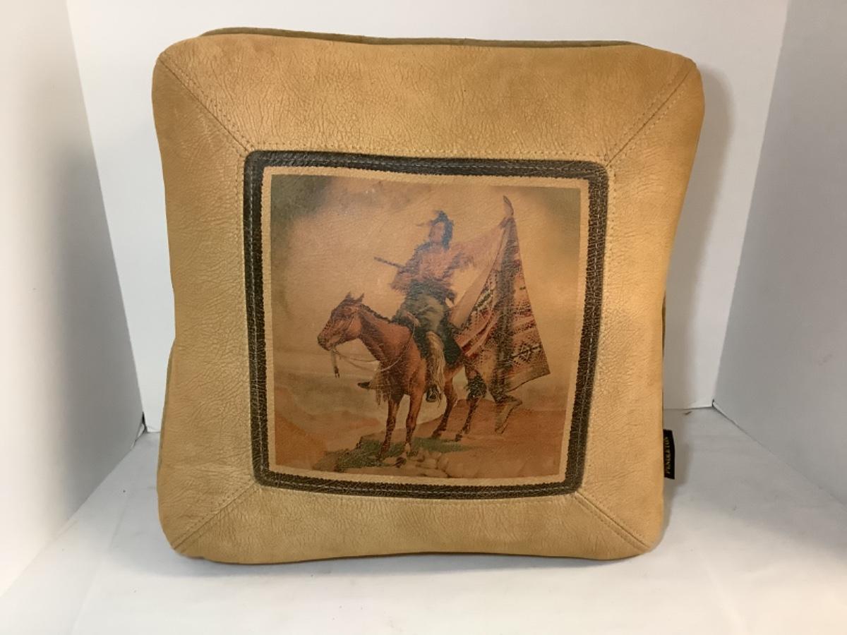 E - 841  Vintage Indian on a Horse Tan Leather. Throw Pillow by Pendleton ,  Arrowhead, & Book A Guide to America’s Indians