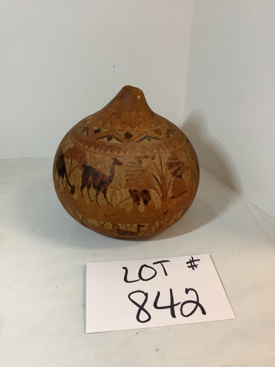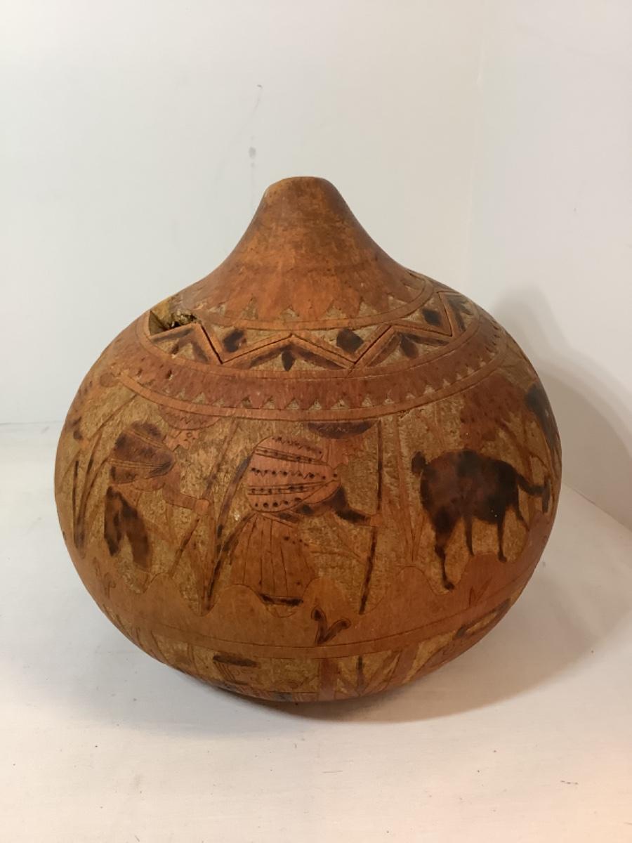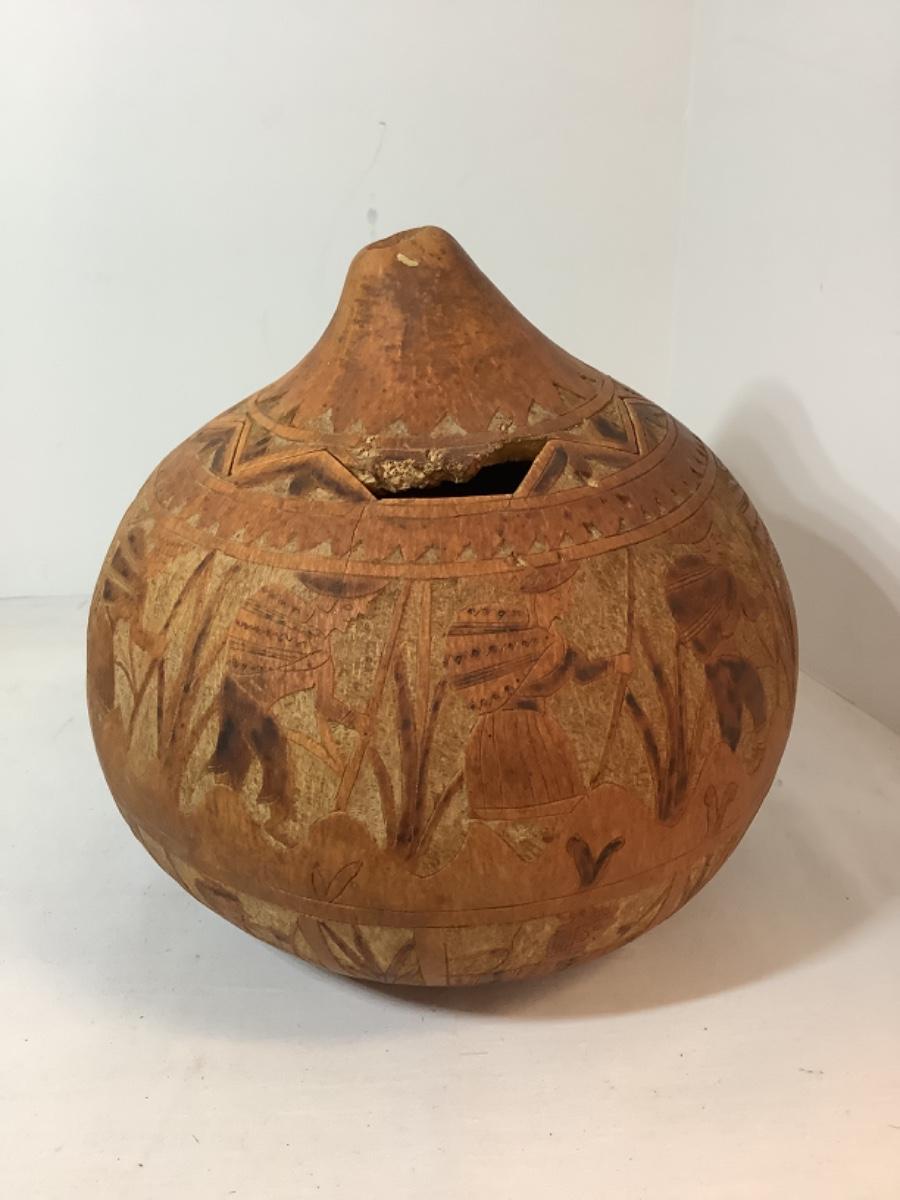 E - 842 Beautiful Vintage Hand Carved Gourd with Star Lid