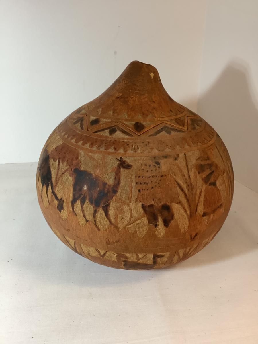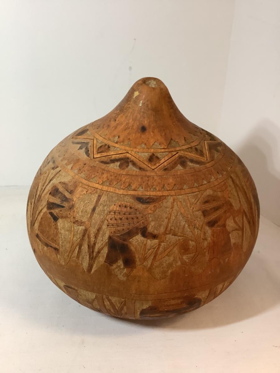 Beautiful Vintage Hand Carved Gourd with Star Lid