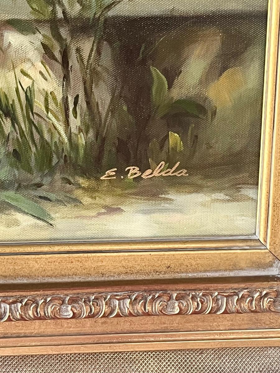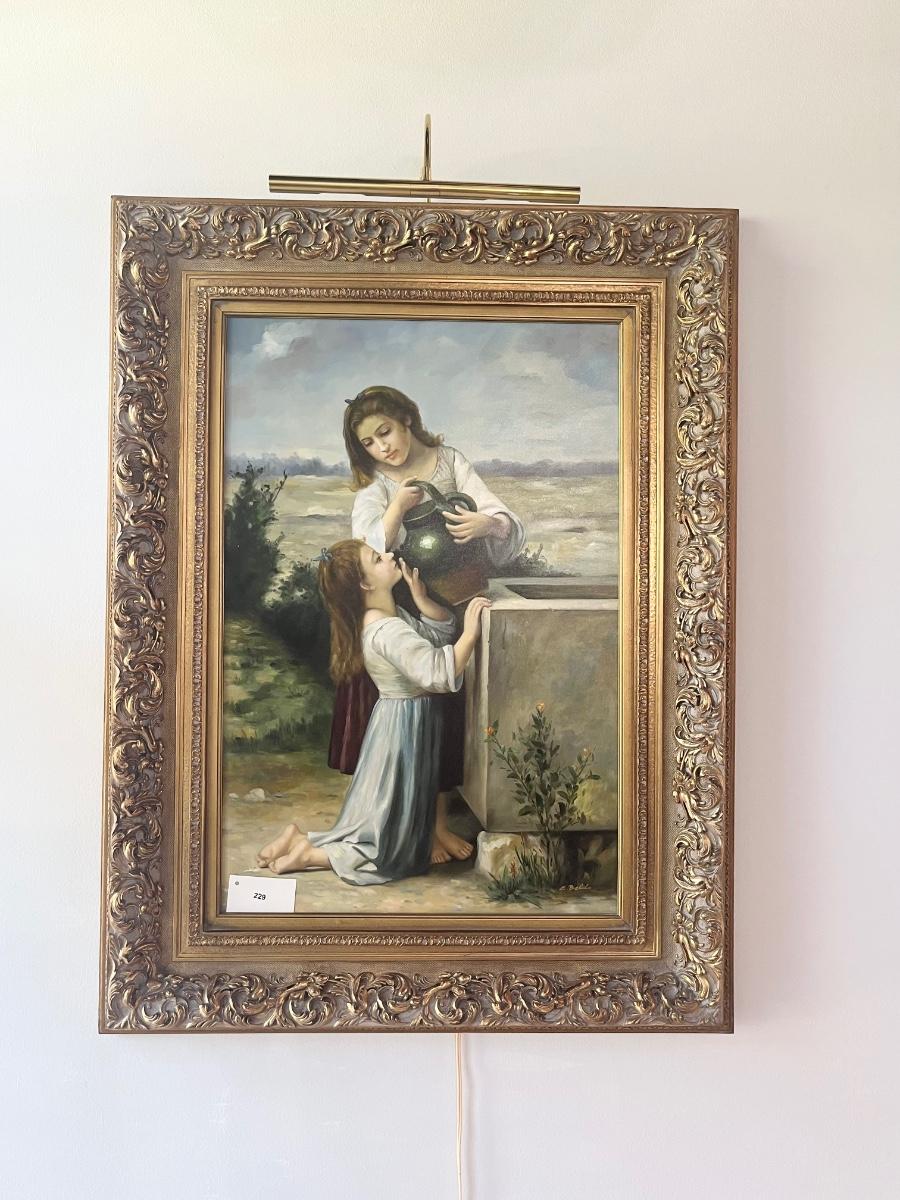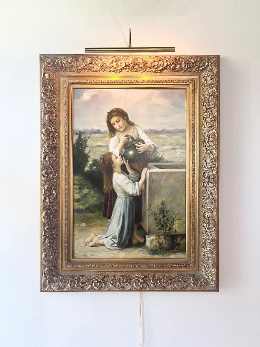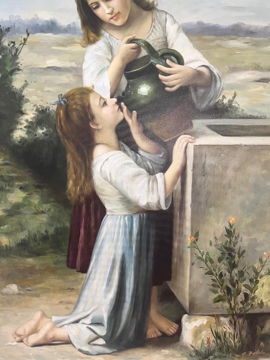 E. BELDA ~ “Two Girls Drinking From a Ewer” Lighted Canvas Painting