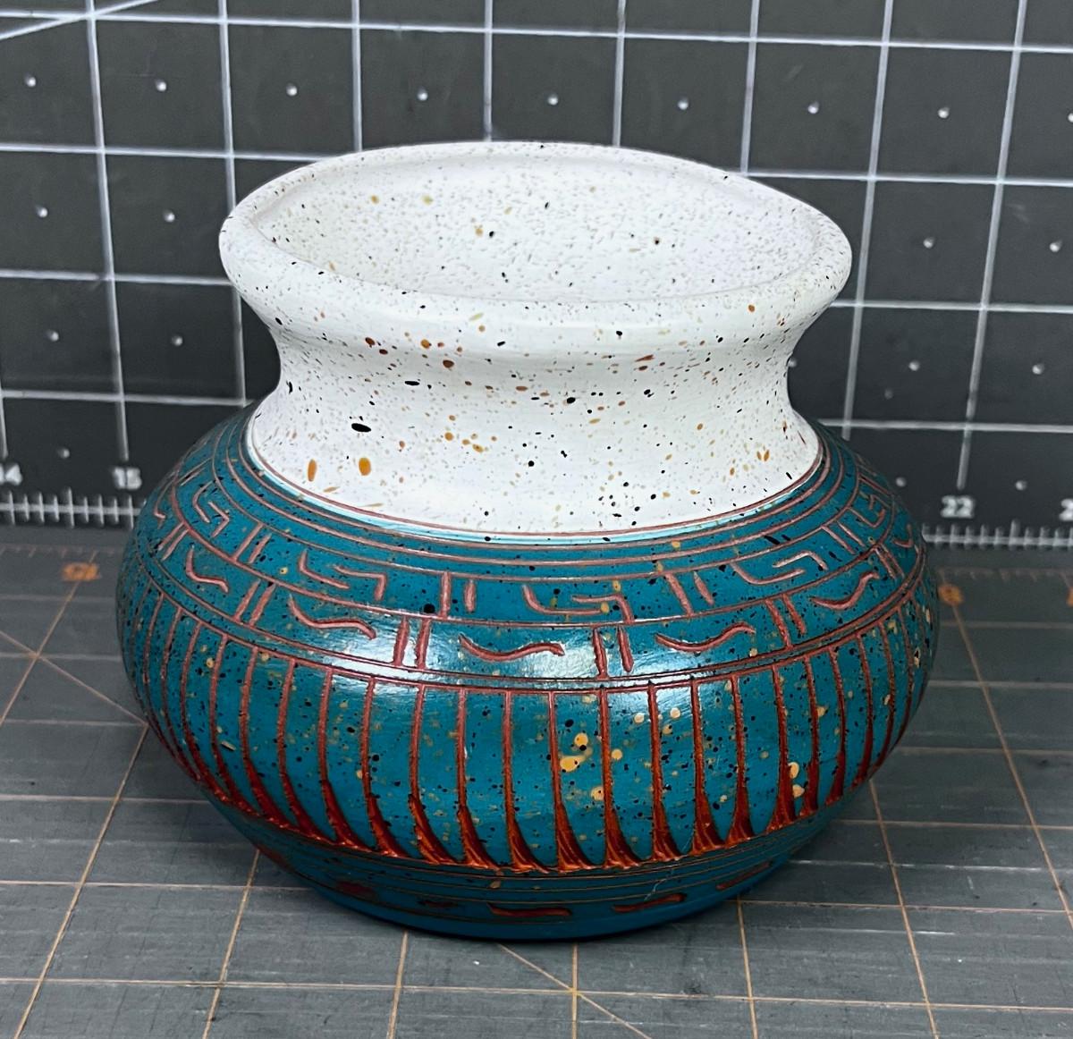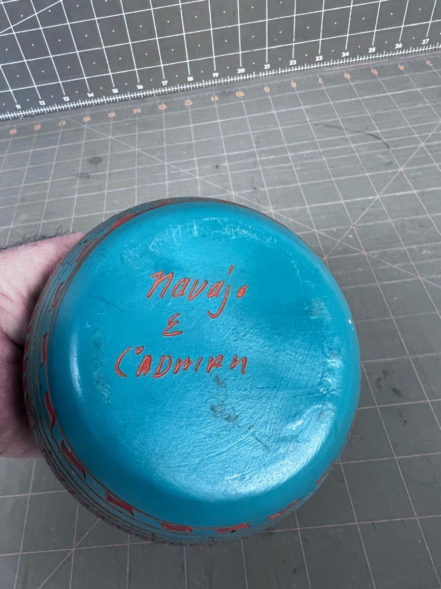 E Cadman Navajo Pottery Turquoise & White over Red Clay Pottery.