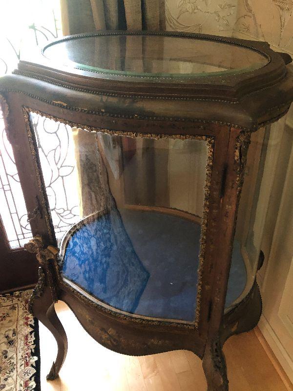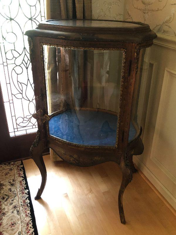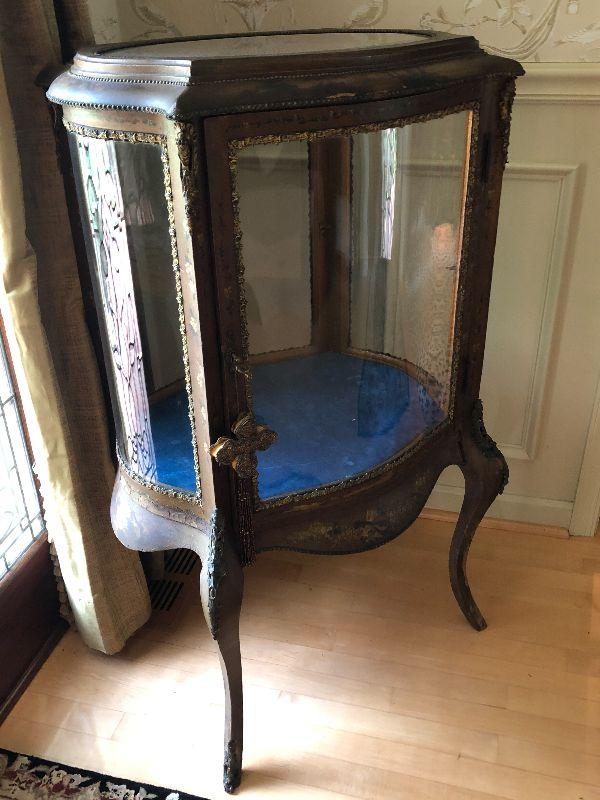 E1: Antique Bowed Front Curio Cabinet / Showcase