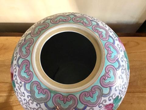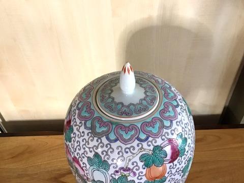 This attractive porcelain jar is 9" across and 14" tall. The base is 5" tall.