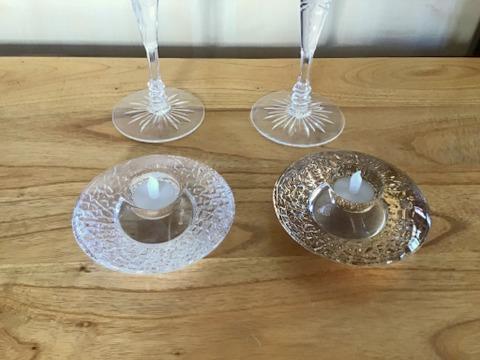 The Orrefors modern disc votive candle holders 5.5" dia.