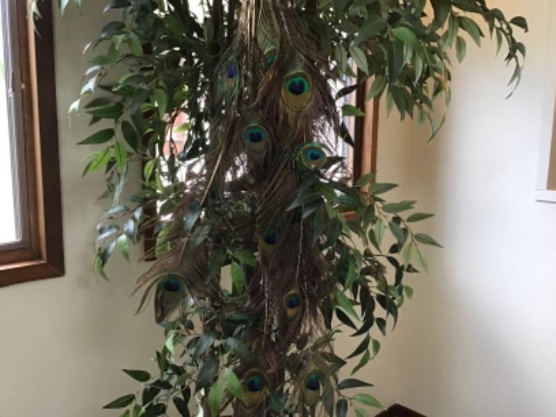 The plant is about 88” tall, the faux peacock is 45” tall