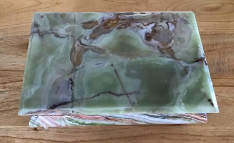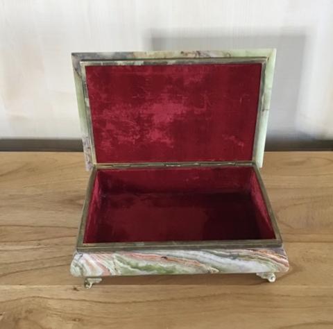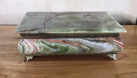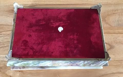 This wonderful box has some weight to it and is 12" across x 8" x 4" tall. Truly a nice jewelry box that would even make a nice gift.