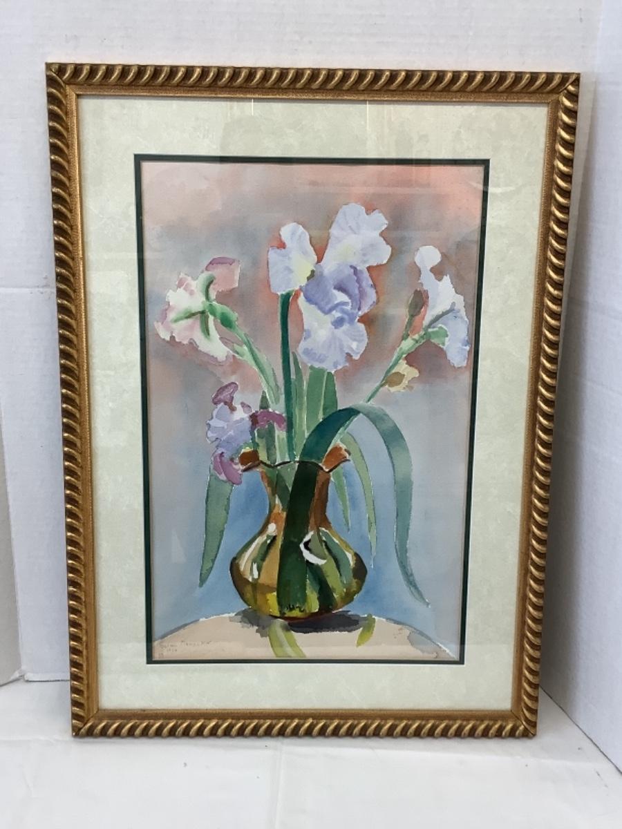 Selma Manacker 1984 signed framed Floral watercolor painting measures 28” x 20-1/2”