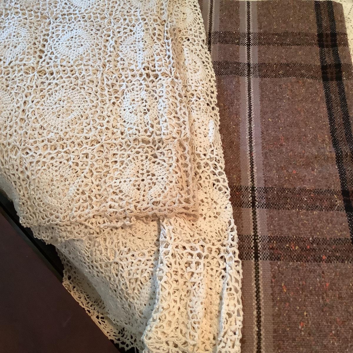 E1199 Lot of Vintage Hand Crocheted Coverlet and Throw