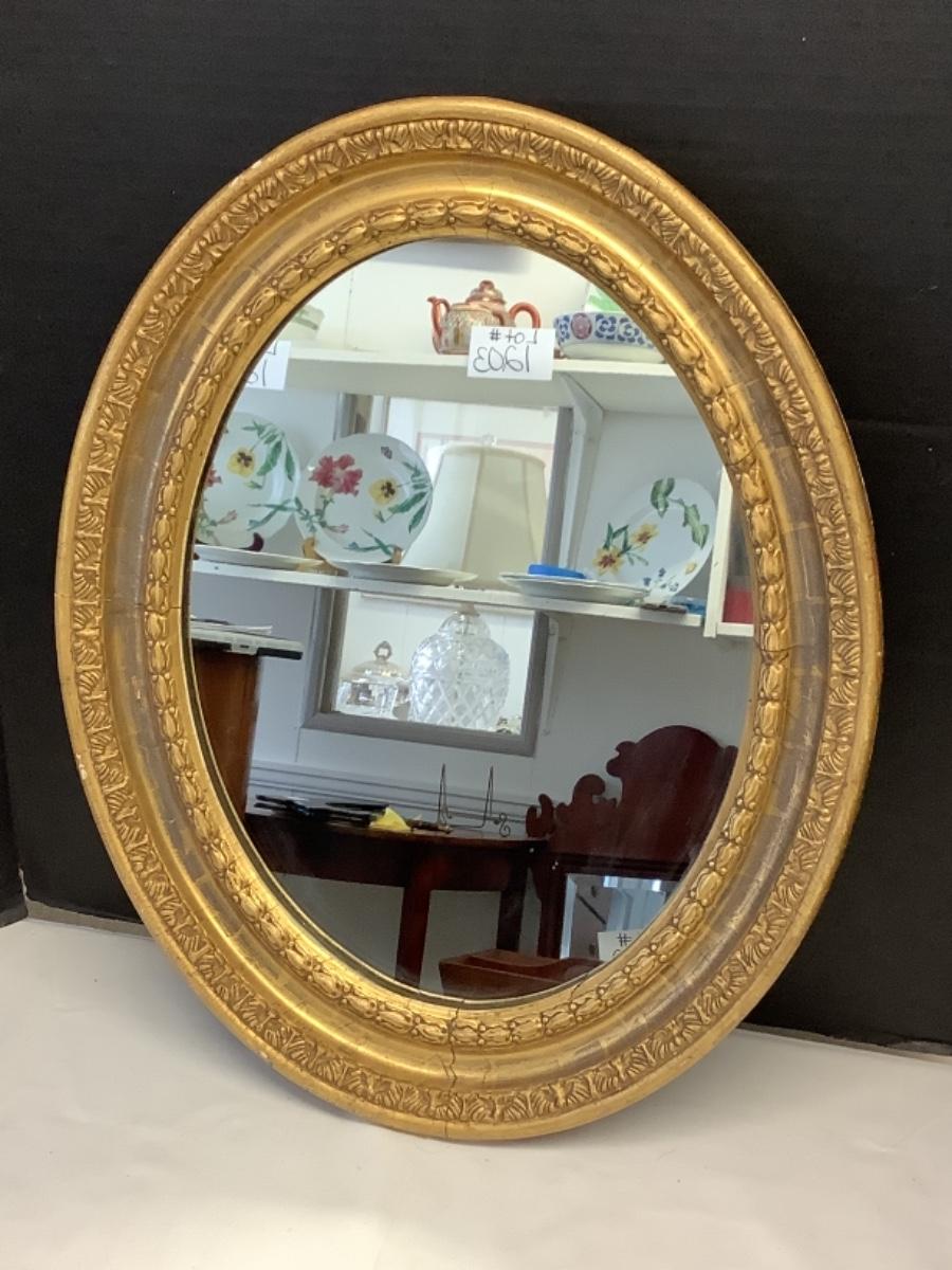 Mirror measures 21-1/2” high and 17-1/2” wide, has some minor damage please see photos