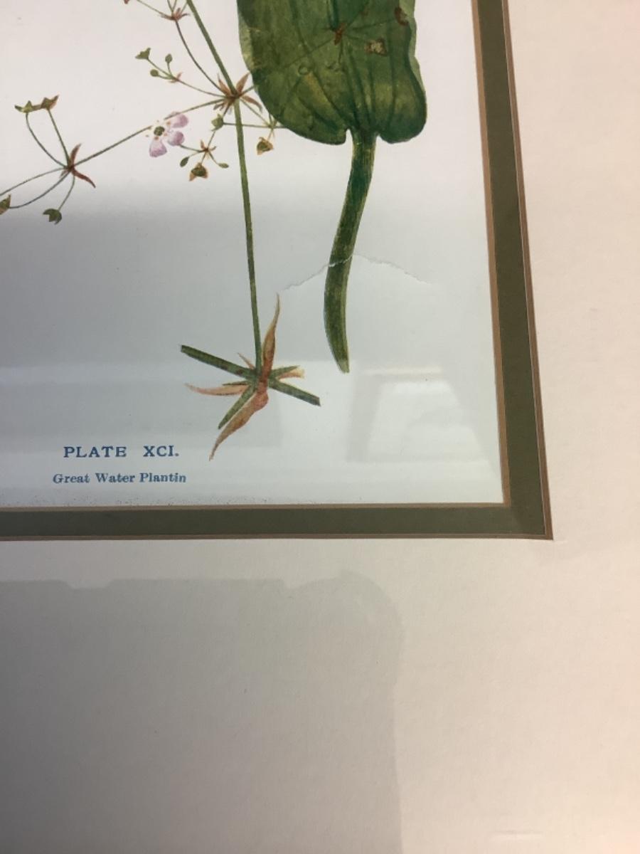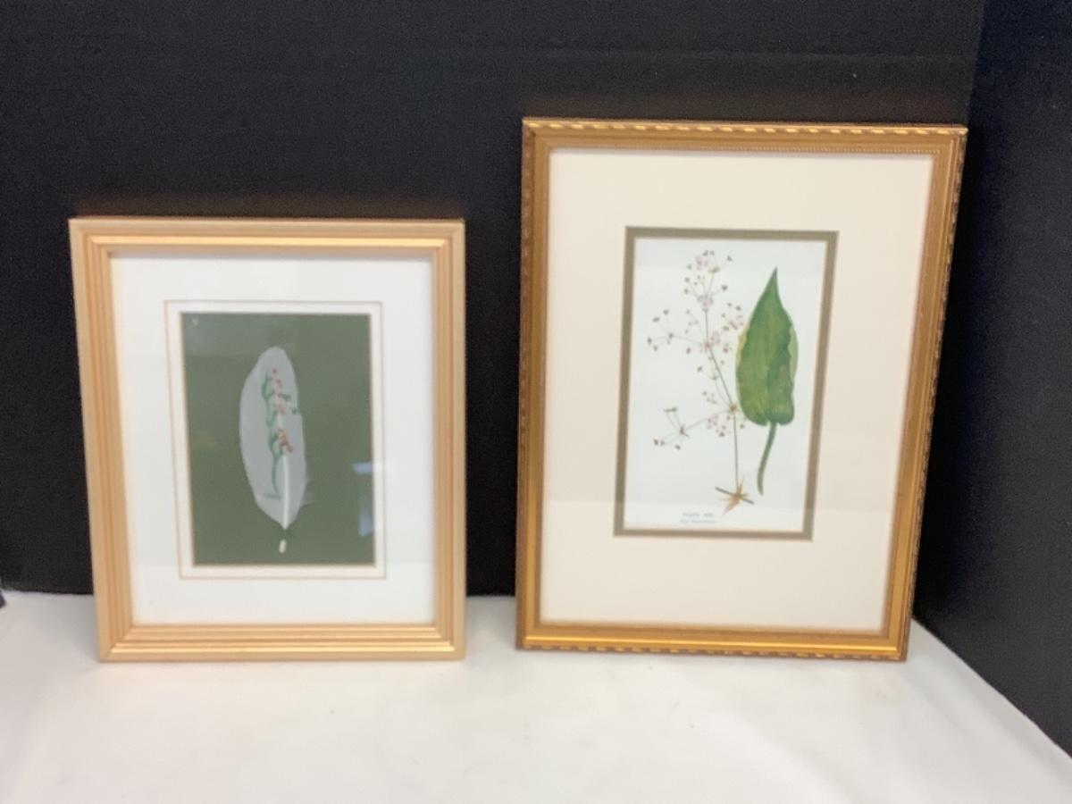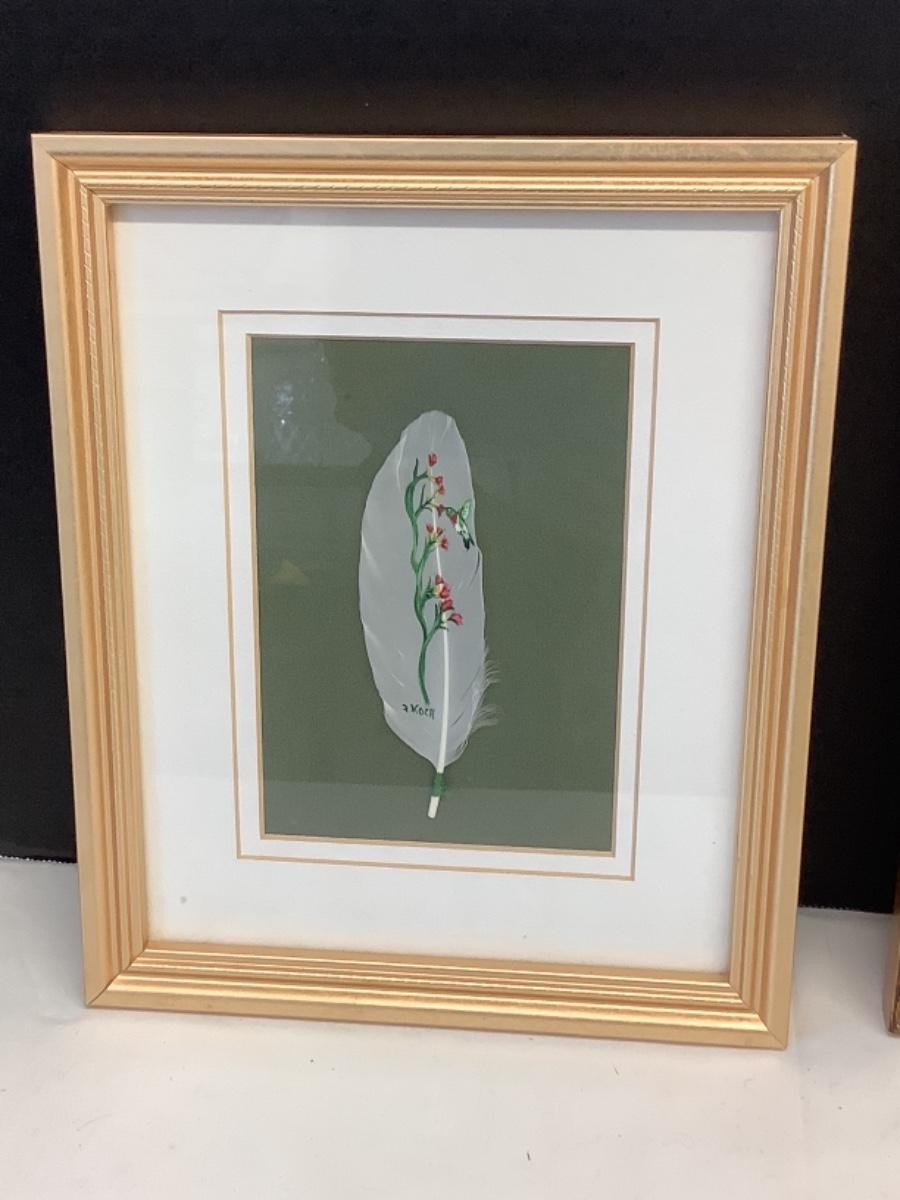 Francine Koch feather painted with Hummingbird, signed, frame measures 11” x 9-1/4”, Framed Great Water Plantin print, frame measures 13-1/2” x 10”