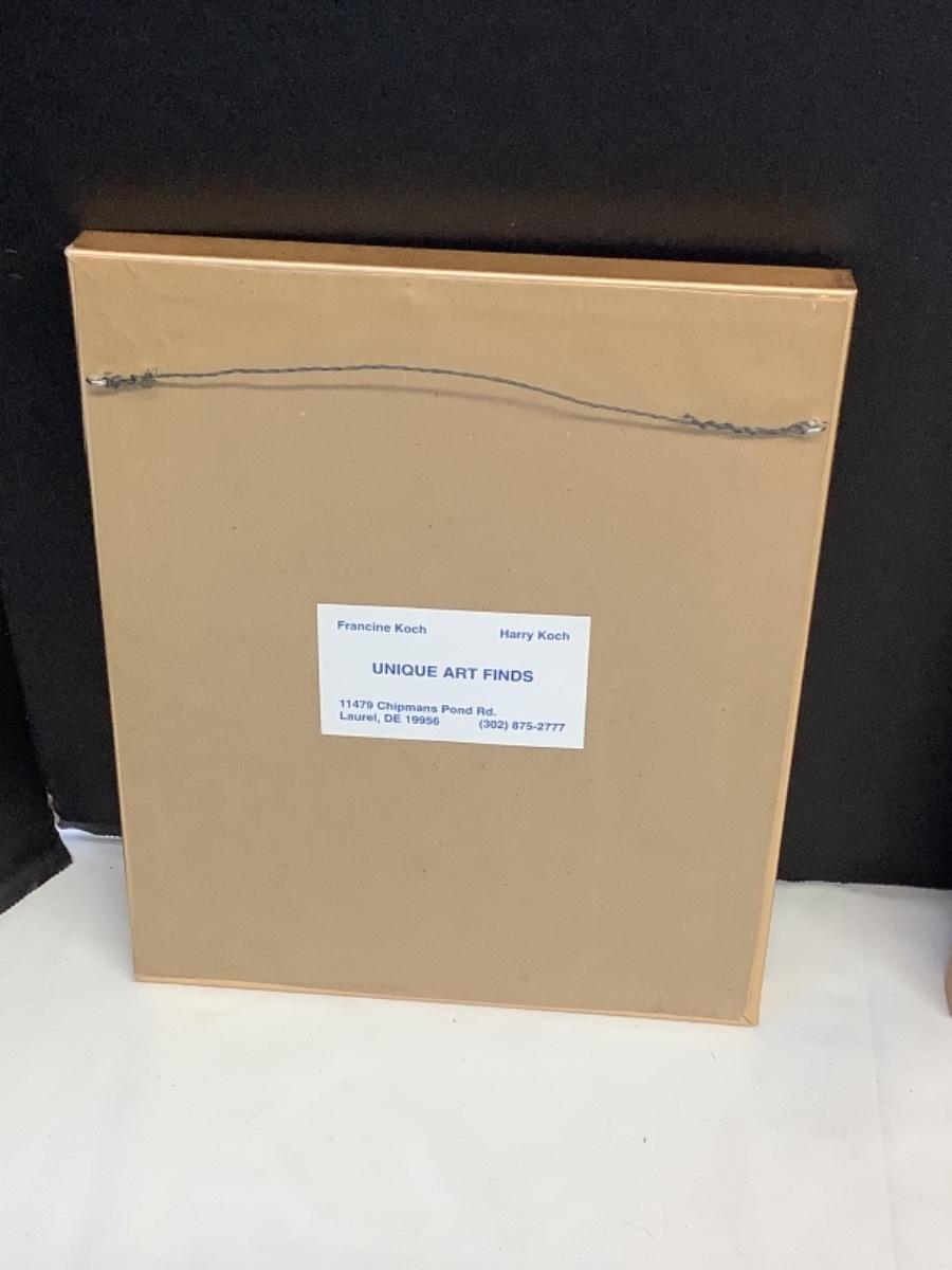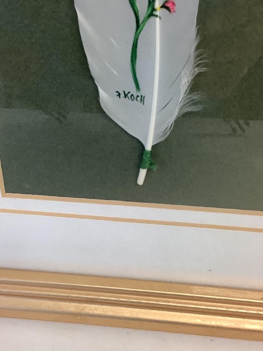 E1225 Francine Koch Signed Framed Painted Feather and Framed Great Water Plantin Pront