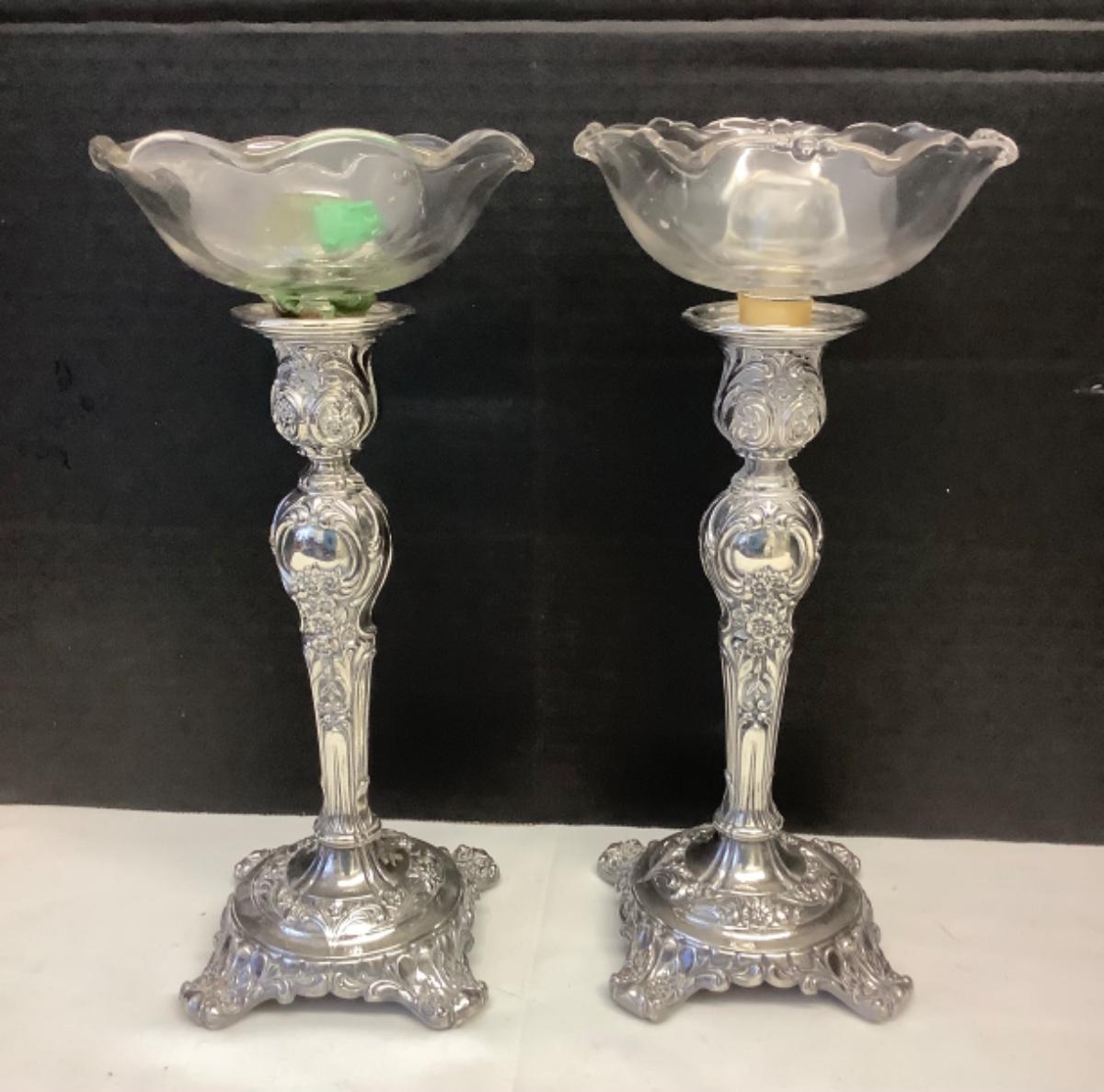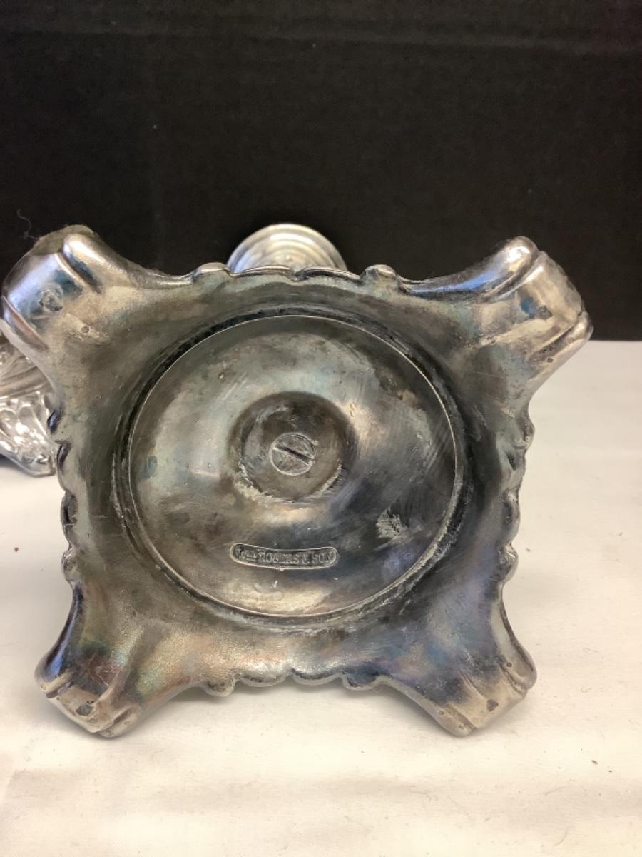 E1234 Pair of W.M. Rogers & Son Silver PLate Candlesticks with Glass Bobeches