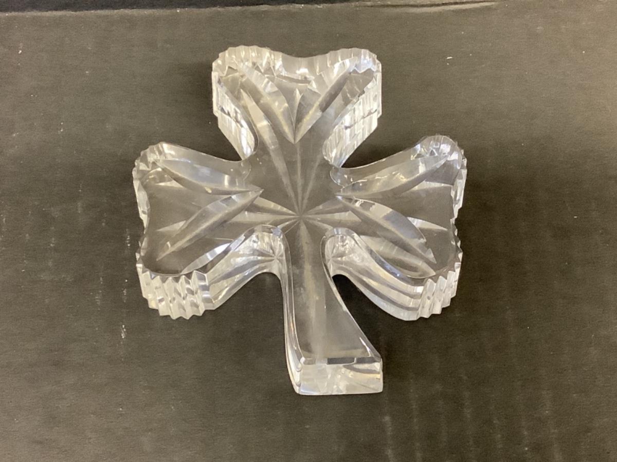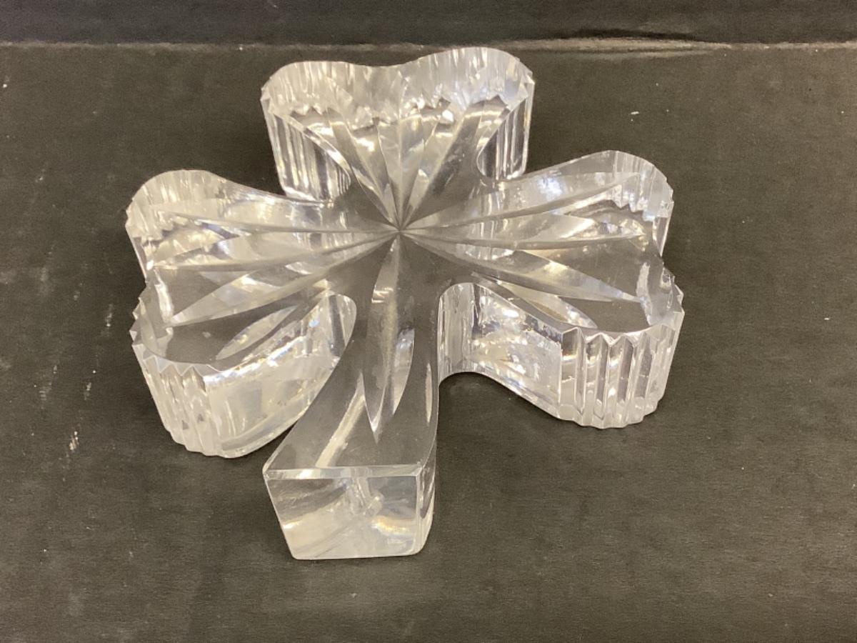 Waterford Crystal Shamrock Paperweight in excellent condition, measures approximately 4-1/2” x 4” and 1-1/4” thick
