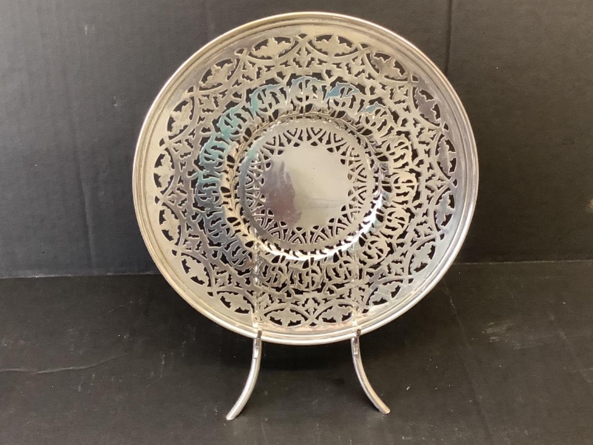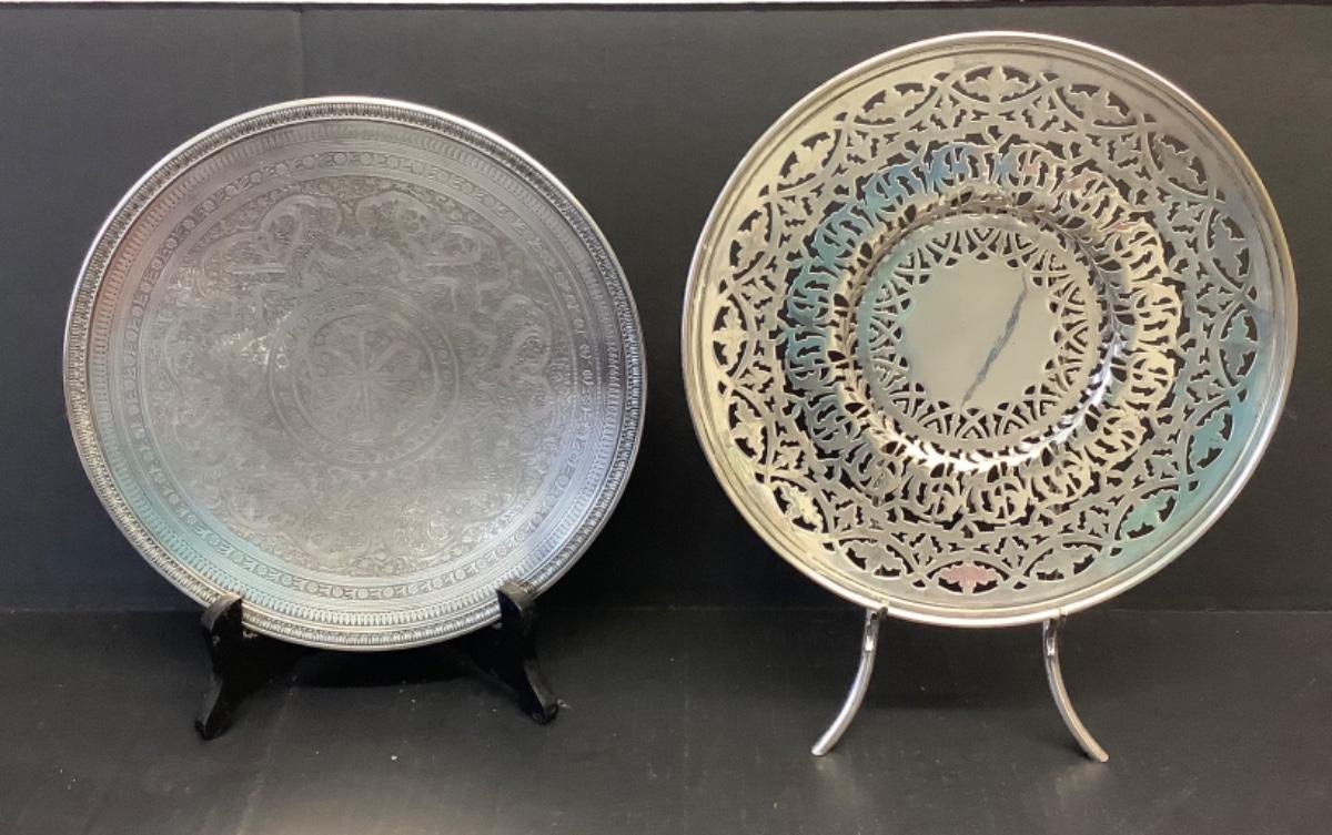 D2167 Reticulated Nickel Silver Footed Plate and Meriden Silver Plate Footed Plate