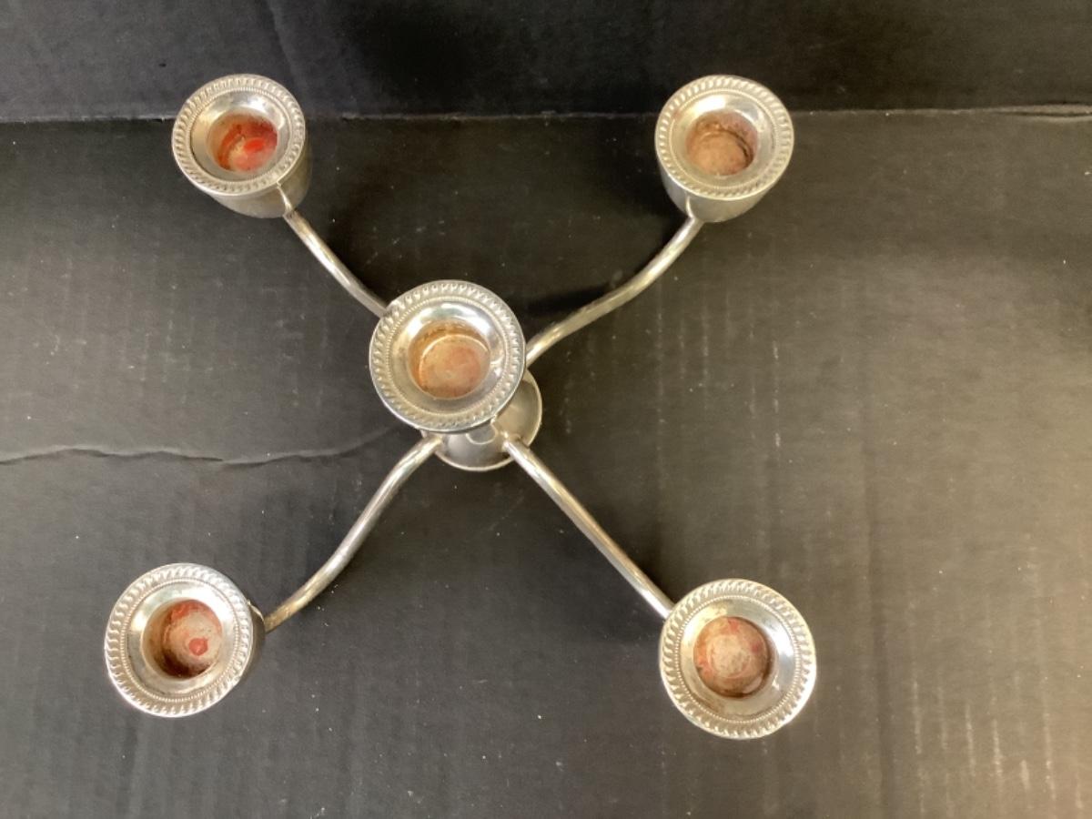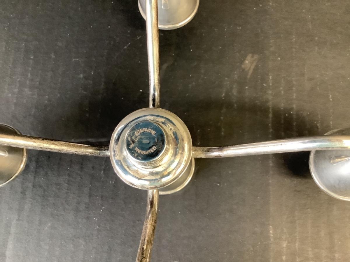 Sterling silver weighted candlestick with glass bobeche 9” tall, Sterling silver 5 candle candelabra attachment