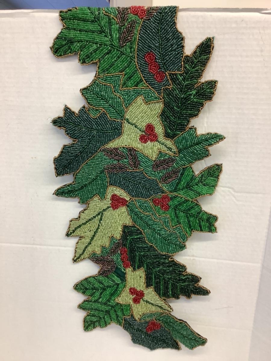 Beaded runner is missing some beads, please see photos for any spots or damage.