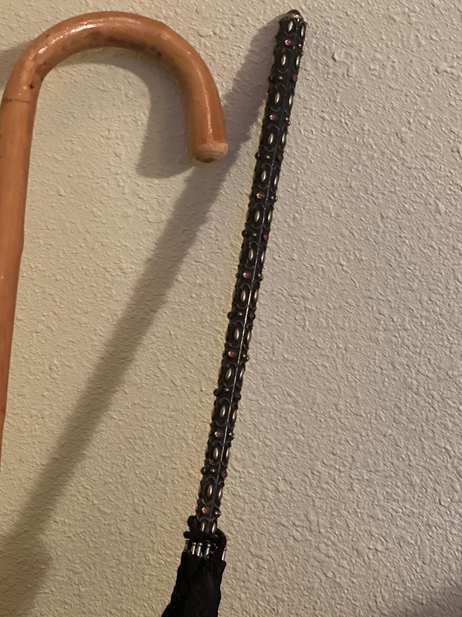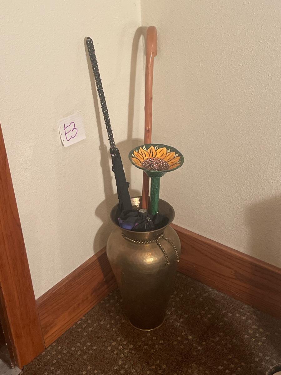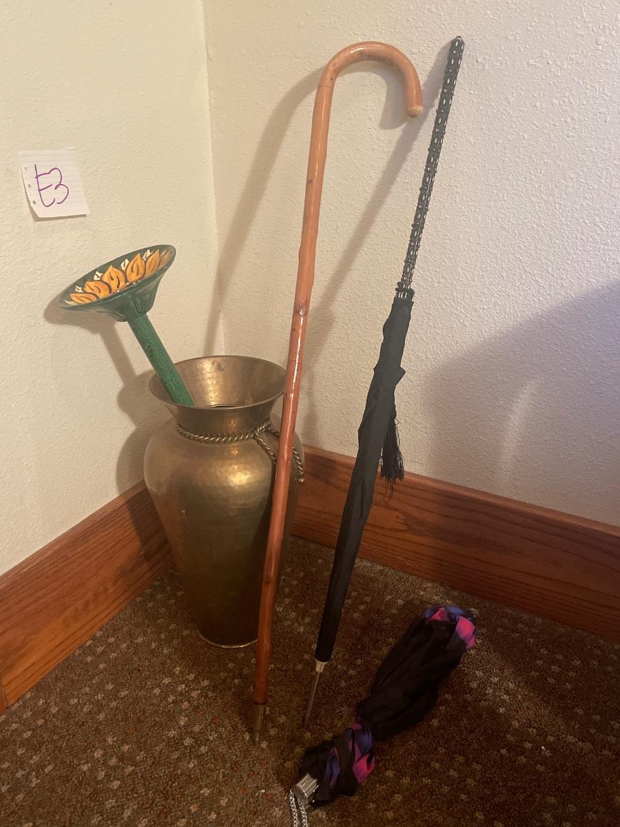 E3-Umbrellas, cane, garden bath in a large vase