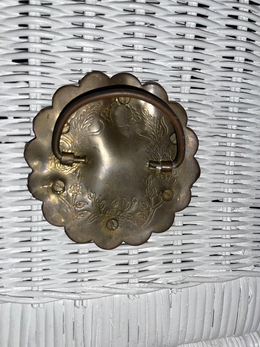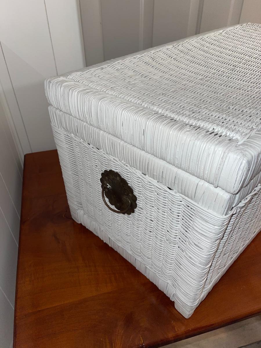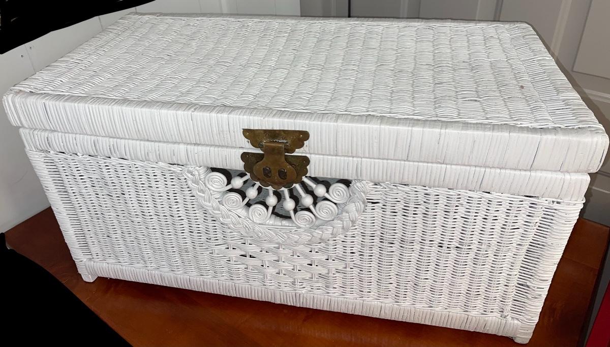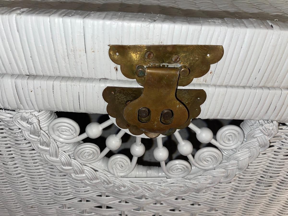 Overall great condition with very minor wicker damage, (see pic). Decorative front with front brass hardware.