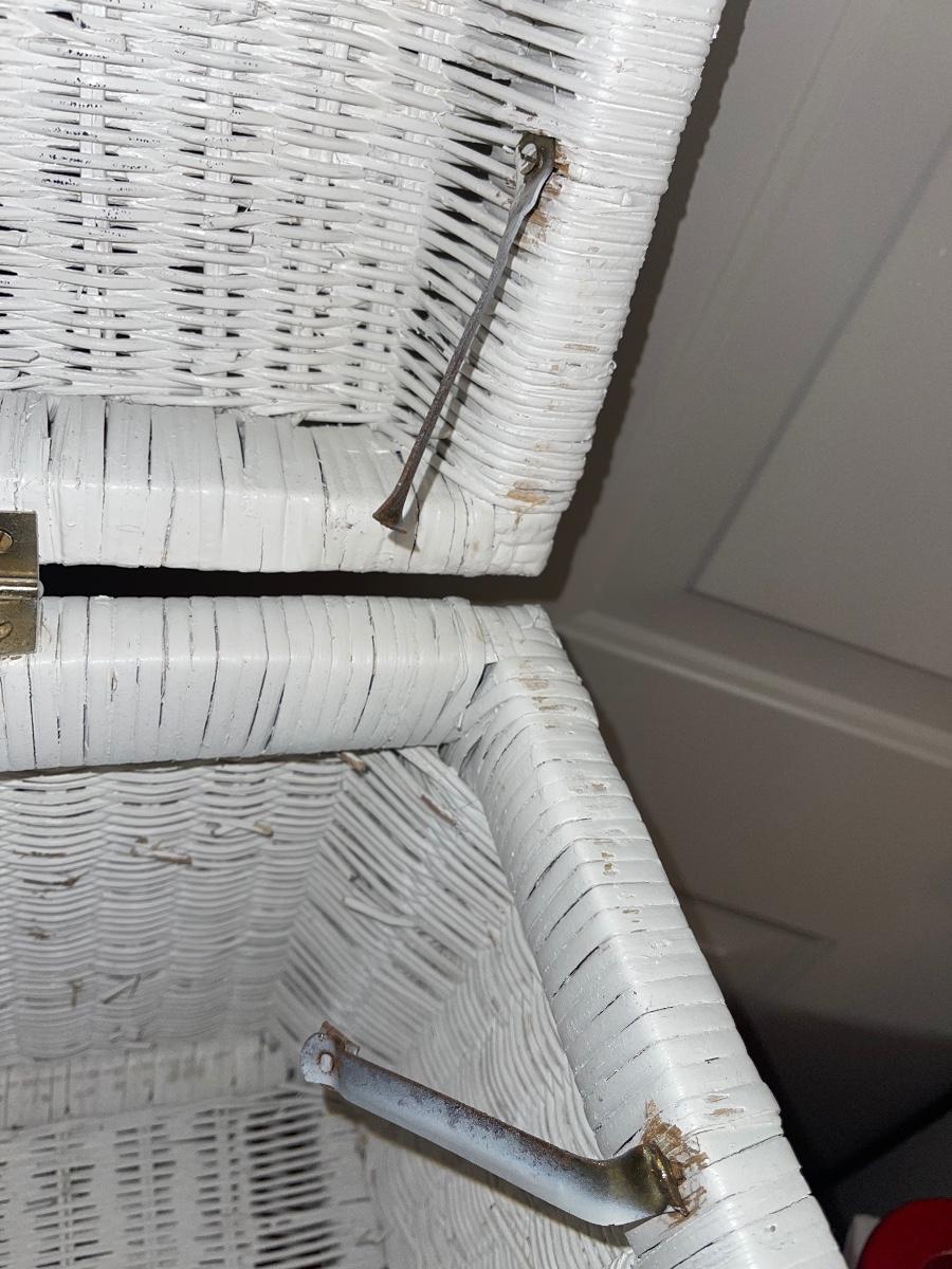 Note: The right inner lid metal hardware bracket is broken (see pic).