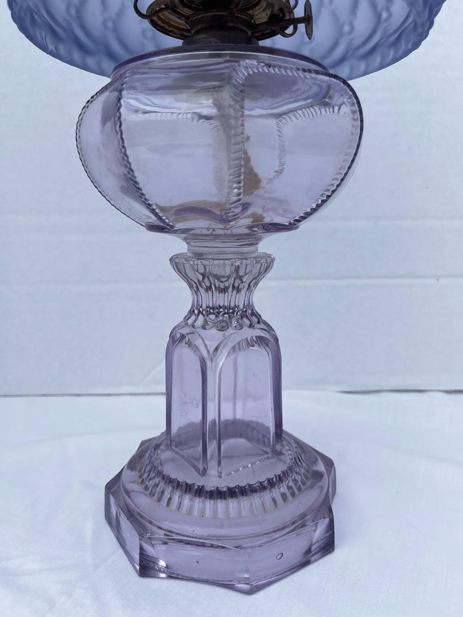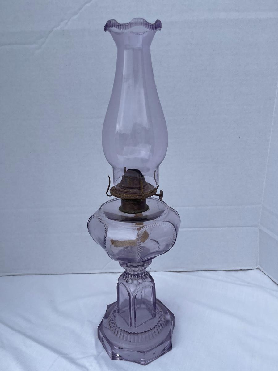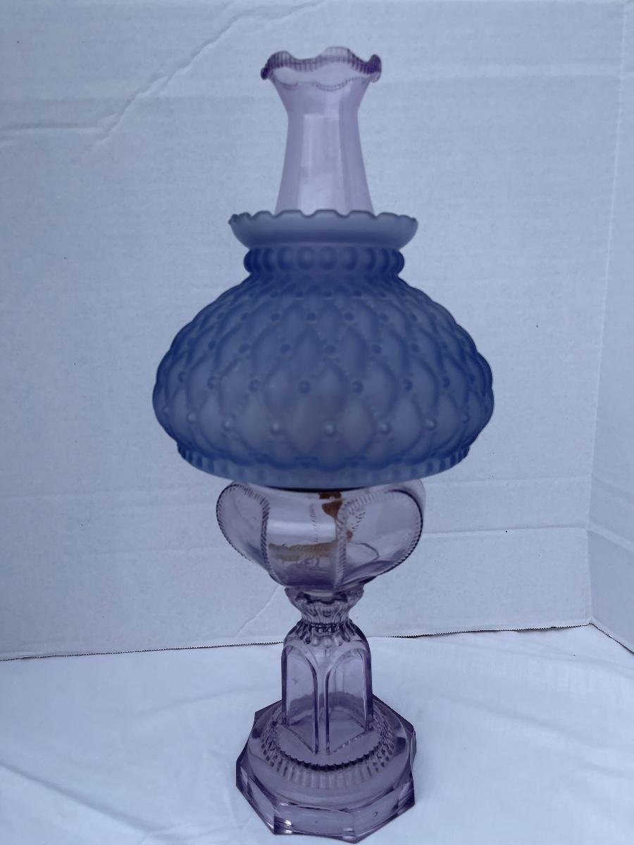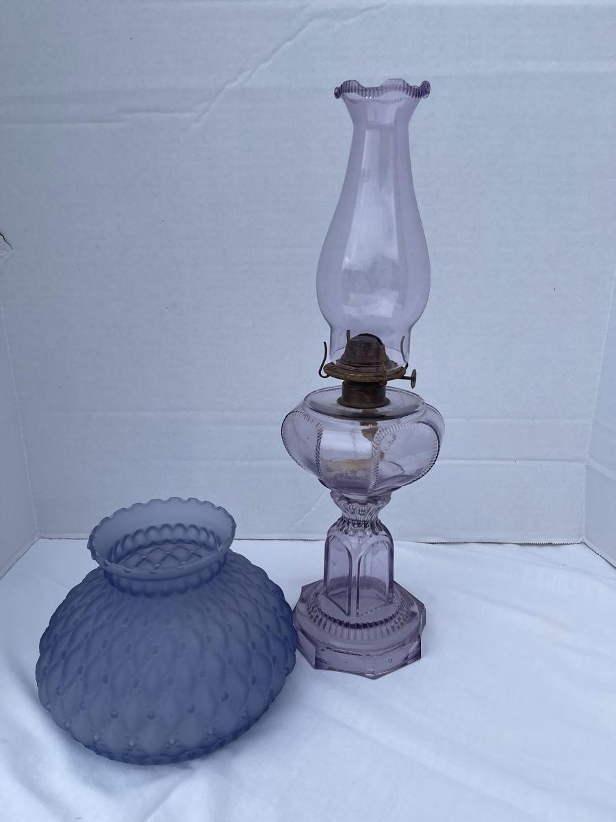 E-414 Vintage Lavender Quilted Shade Oil Lamp