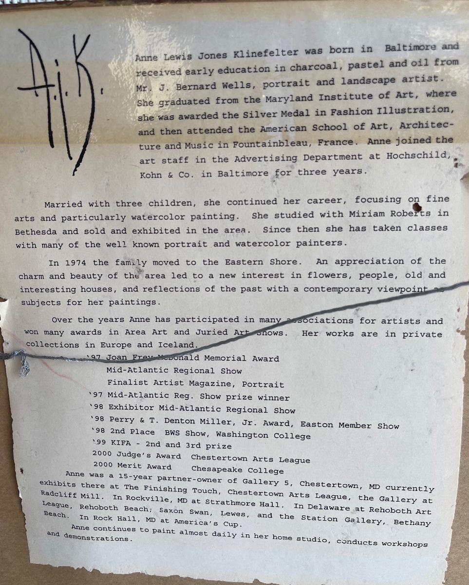 E-420 Original Watercolor by Anne Lewis Jones Klinefelter
