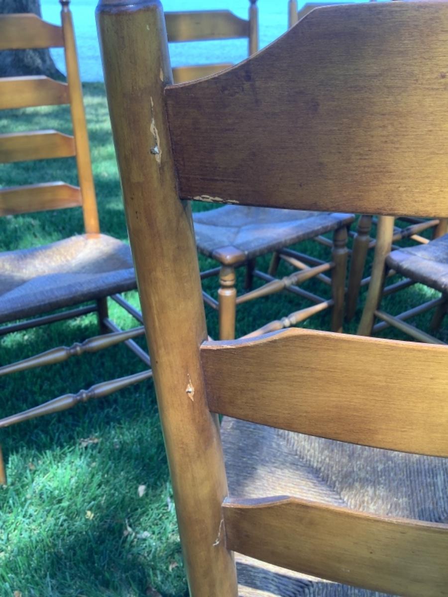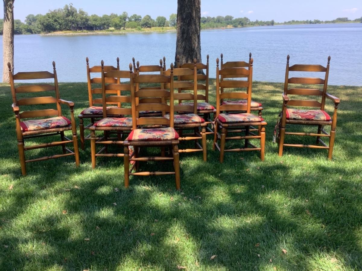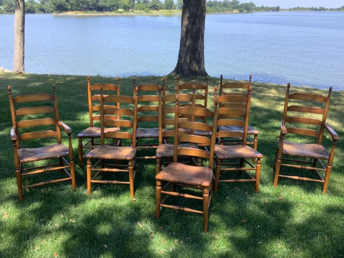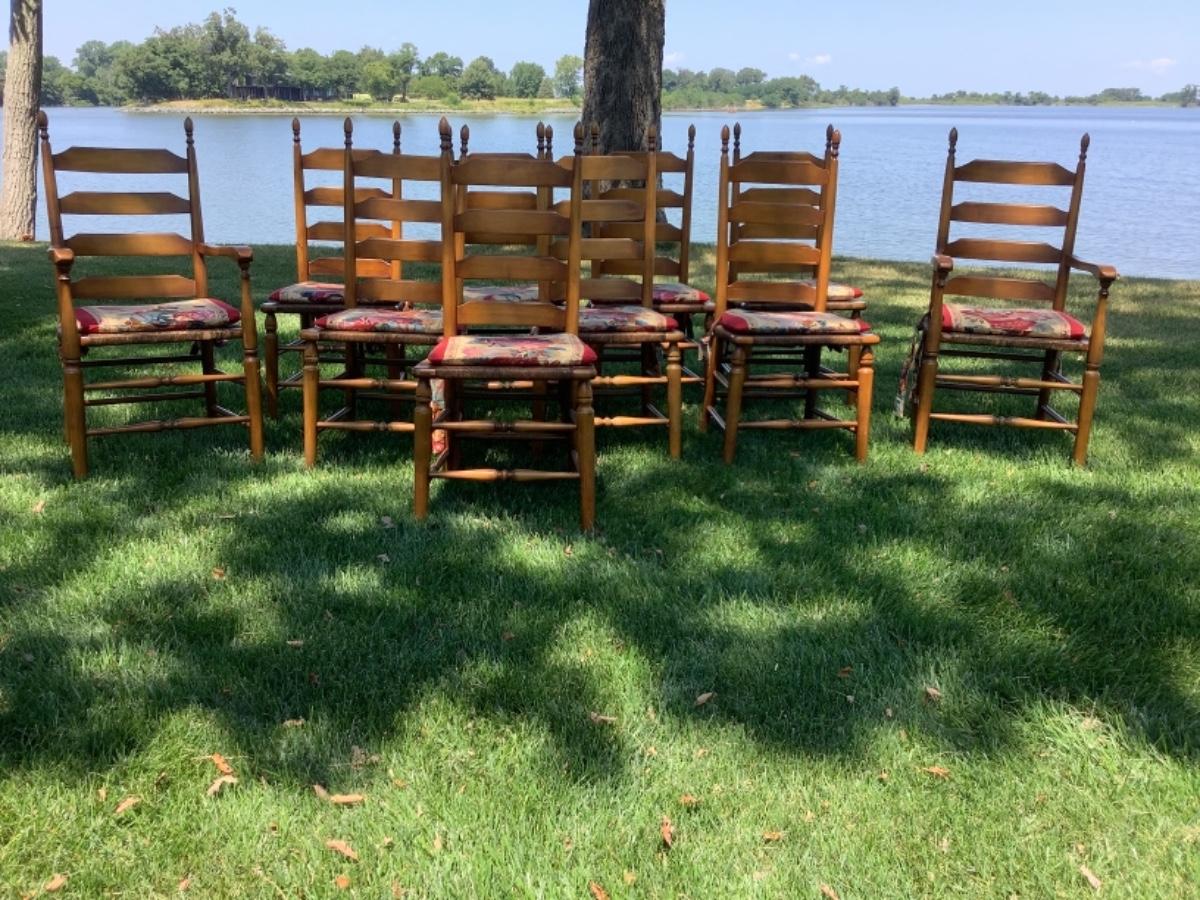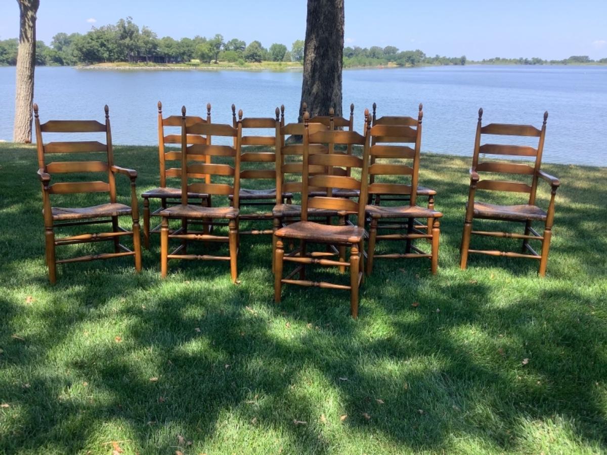 E529 Set of 10 Pine Finish Ladder back Chairs by Boling Chair Co.