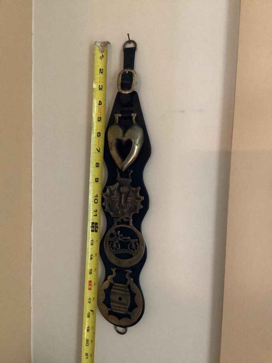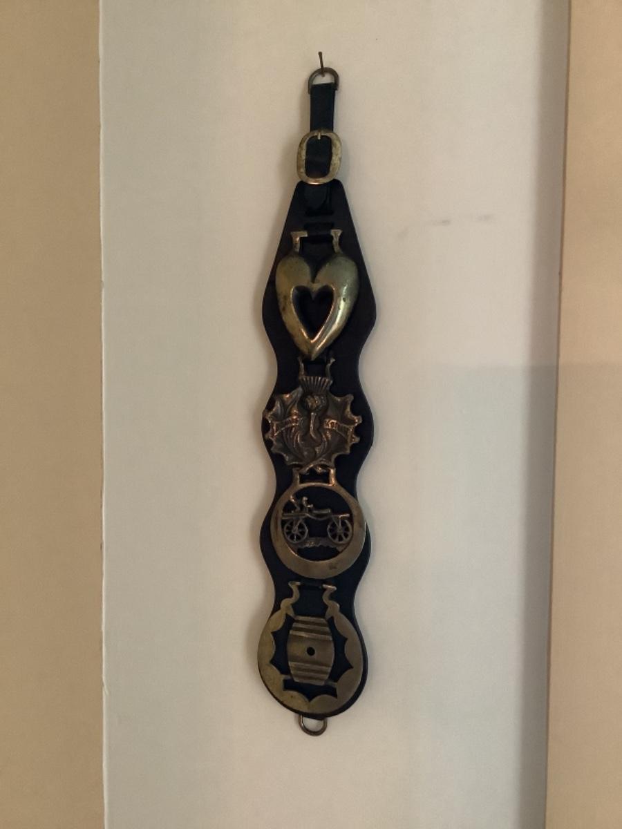 Antique Brass Horse Medallions/ Ornaments on Leather strap