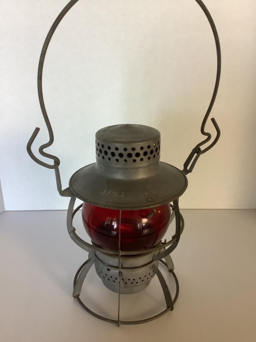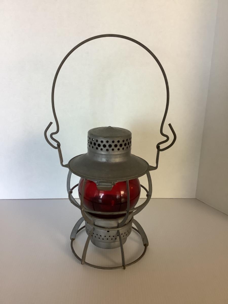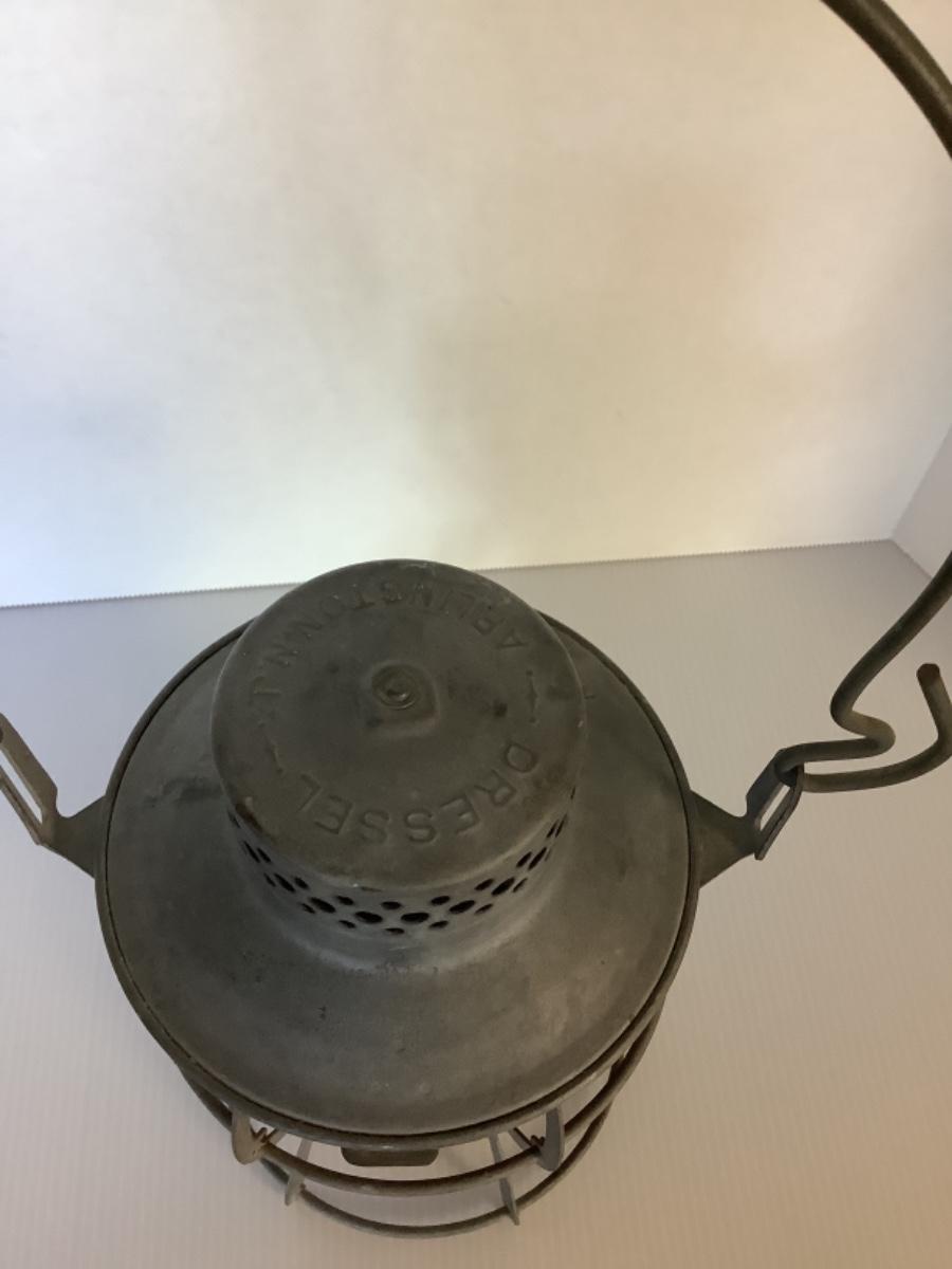 It measures 14 1/2" tall with the handle and is 9 1/4" tall without the handle. It is 10" wide at the widest place handle edge to handle edge. It has a bottom diameter of 5 7/8". This lantern is in great condition.