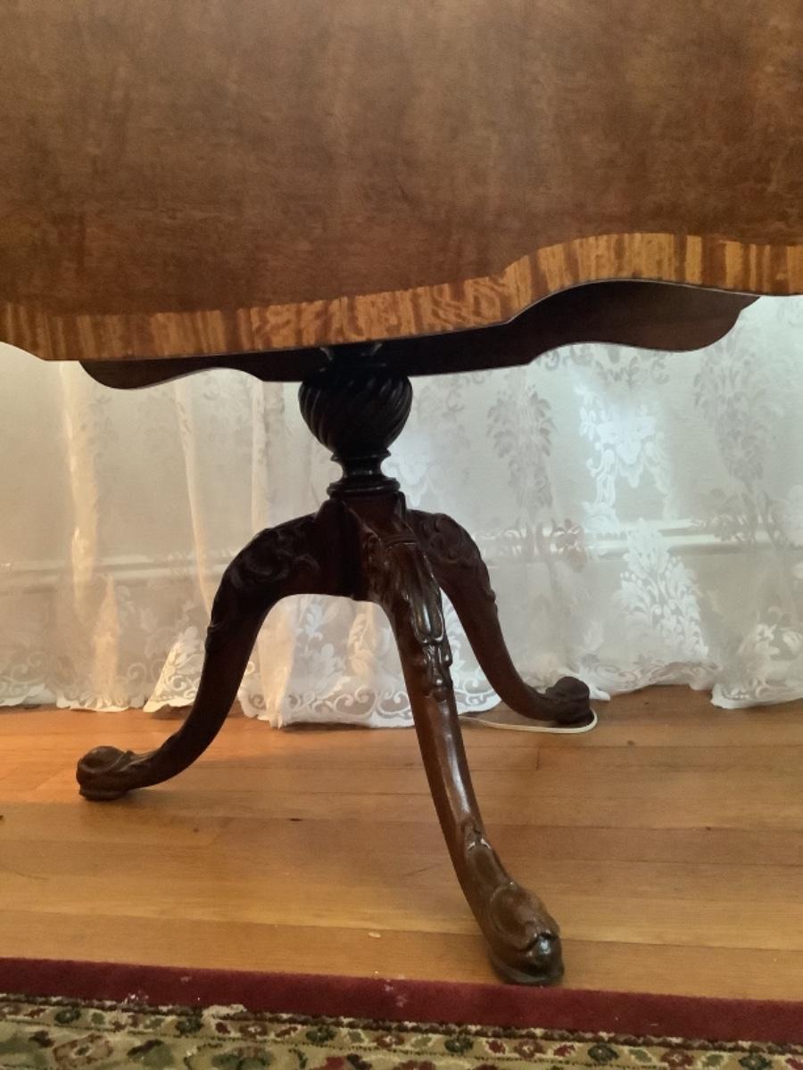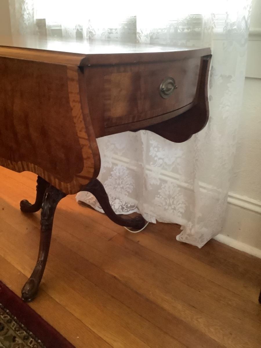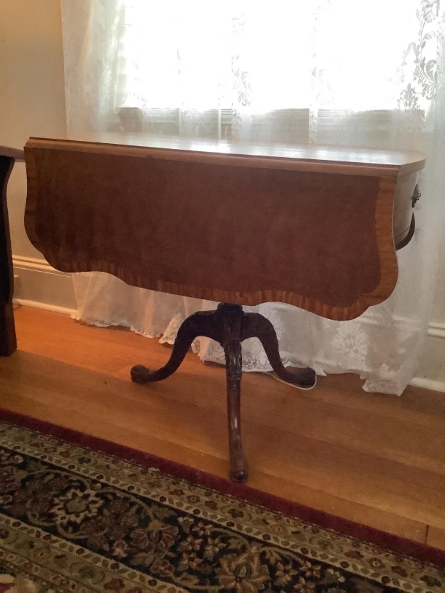E559 Antique Mahogany Single Drawer Pedestal Drop leaf Table