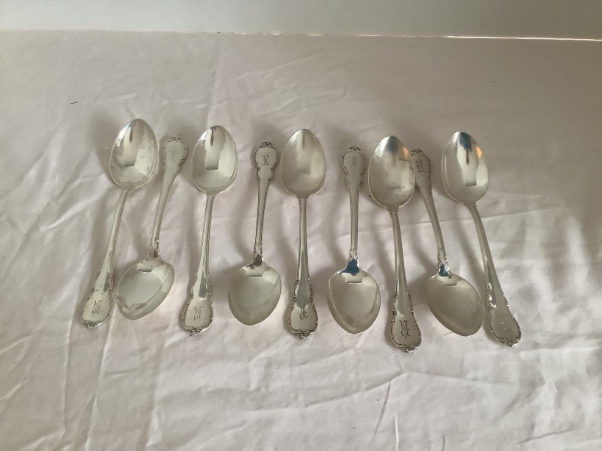 E571 Set of 9 Sterling Teaspoons by LUNT “Modern Victorian”