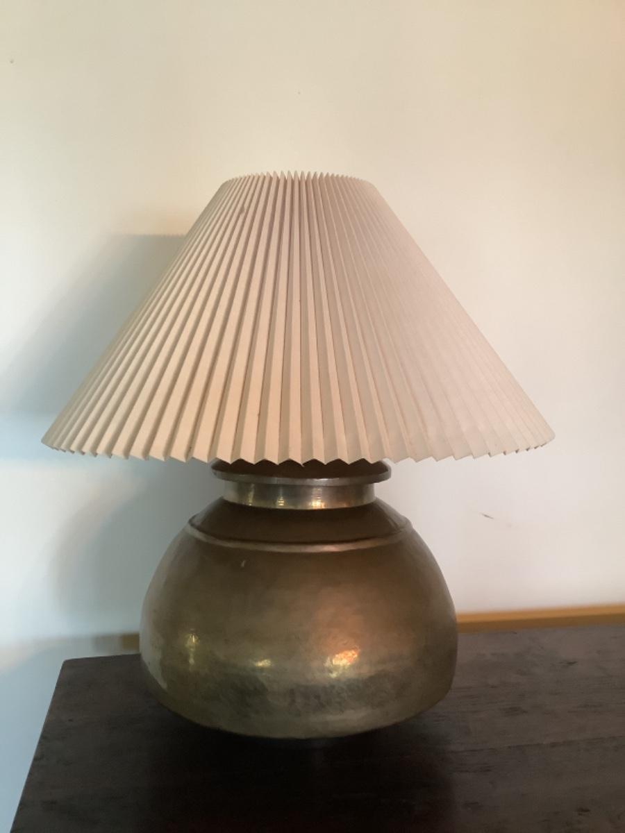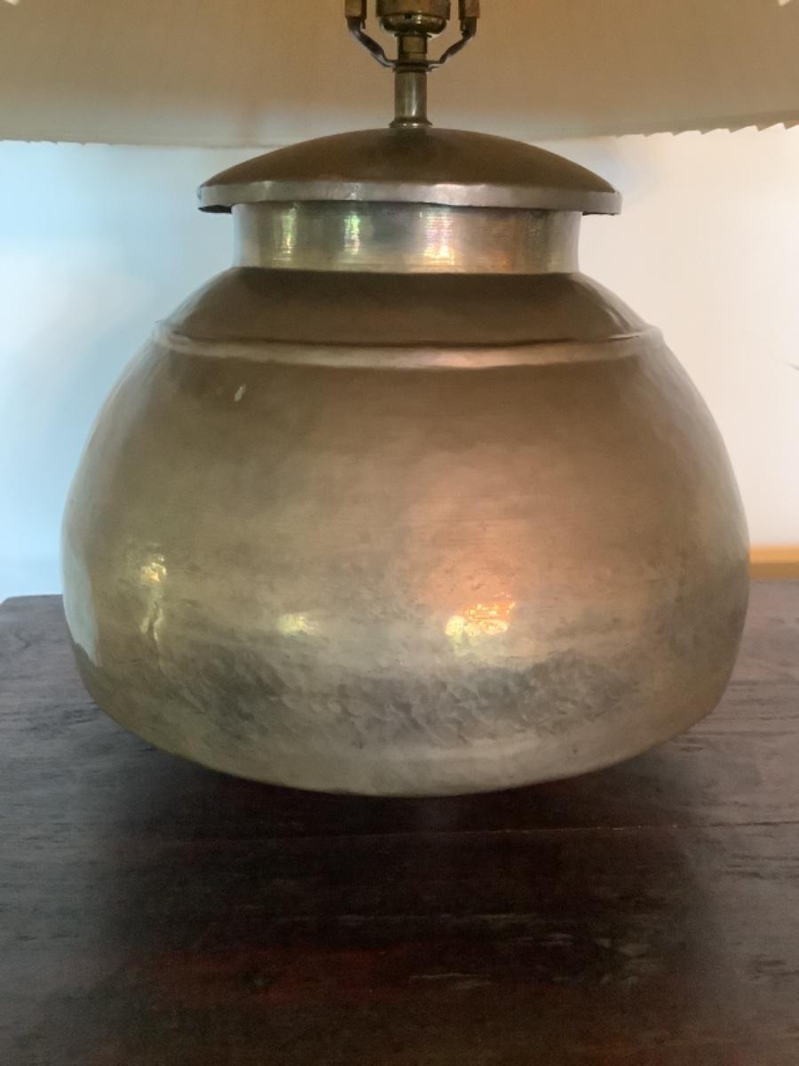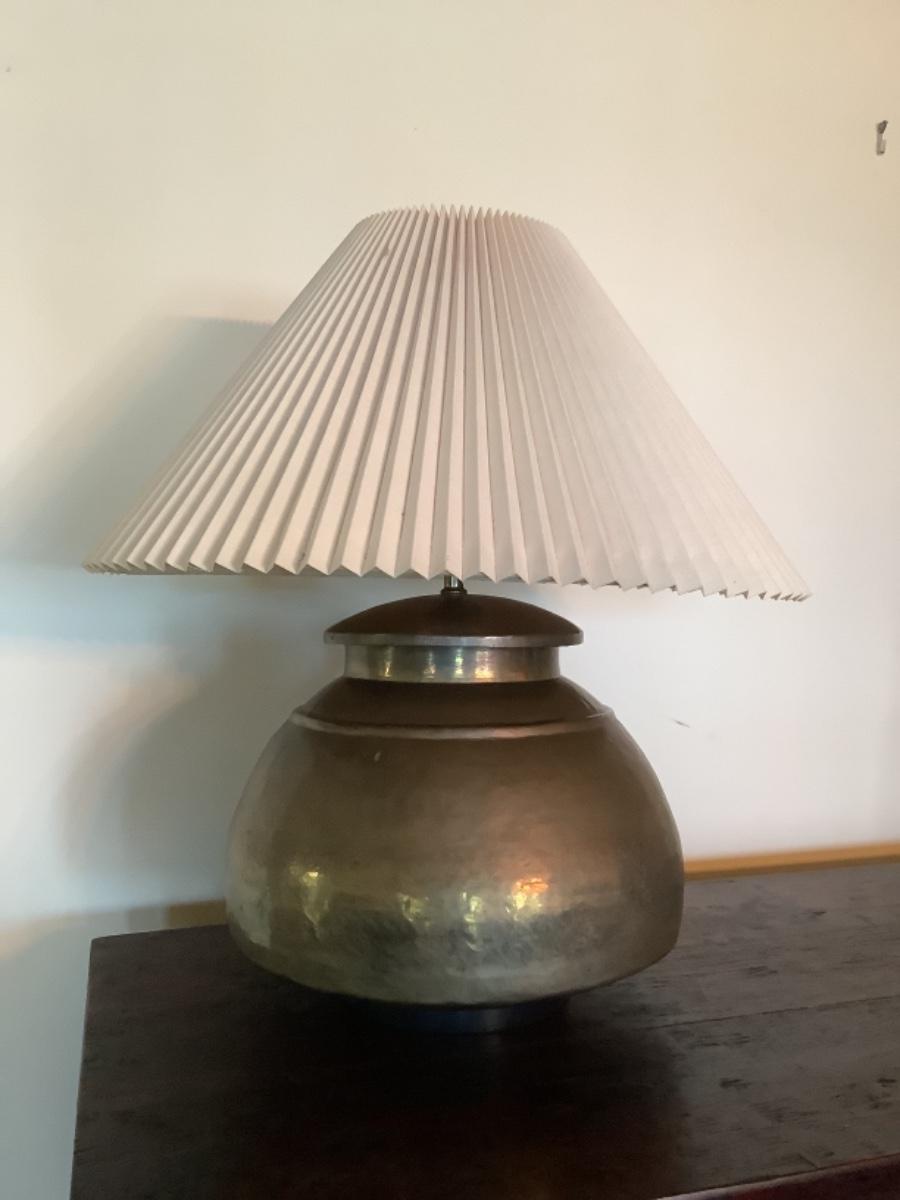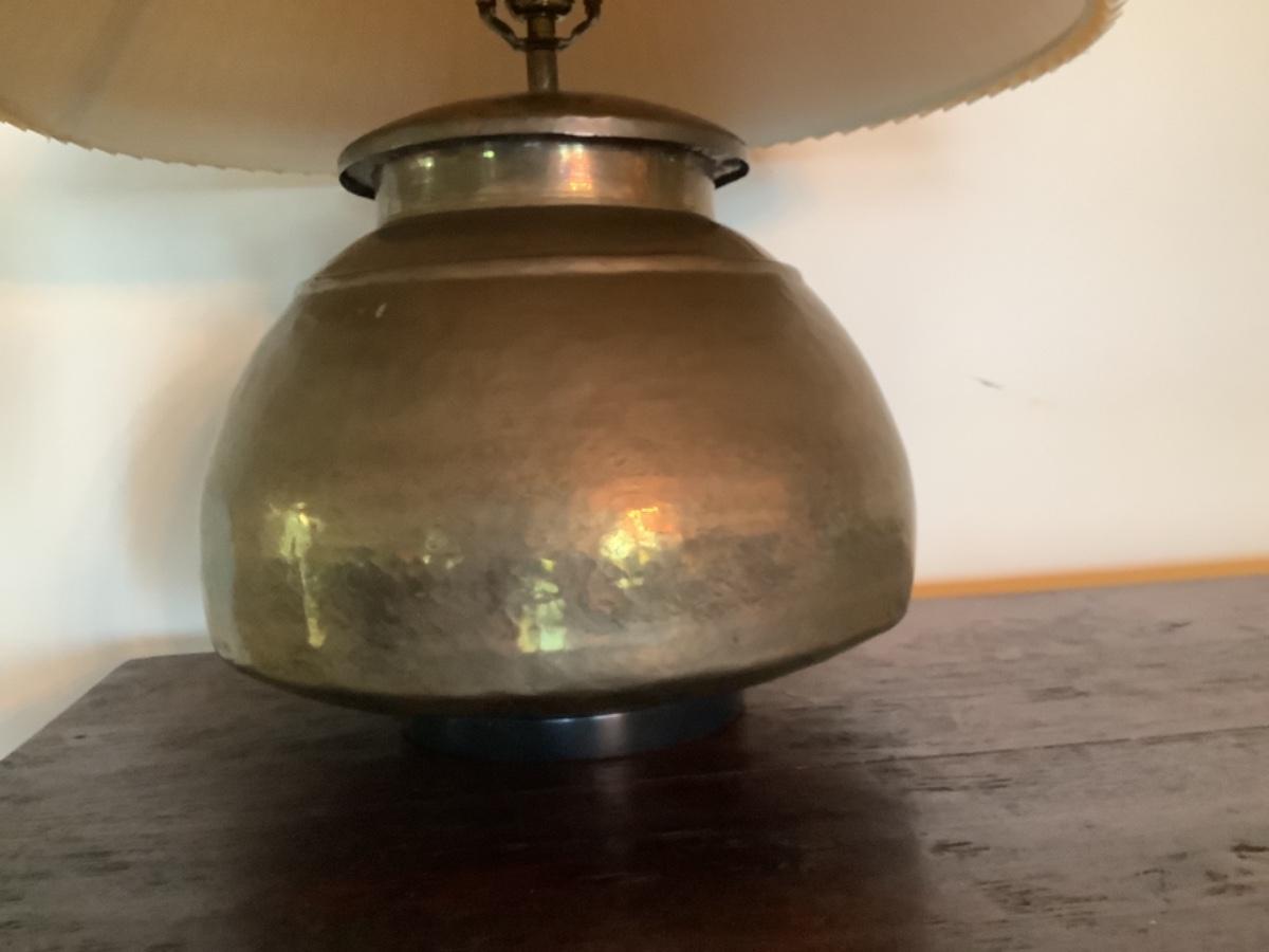 E577 Large Vintage Hammered Balbus Base Brass Lamp