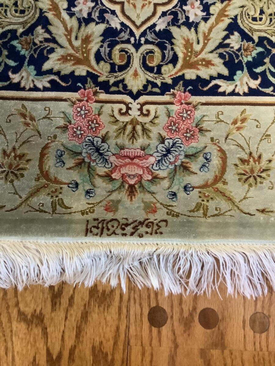 Ghoum Signed Silk Hand knotted Persian Rug in Excellent Condition